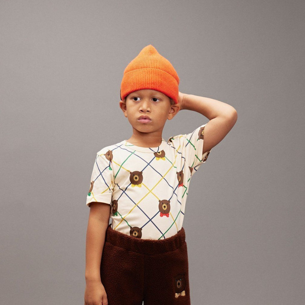 Kinder t-shirt Bear check Ecru van Mini Rodini.