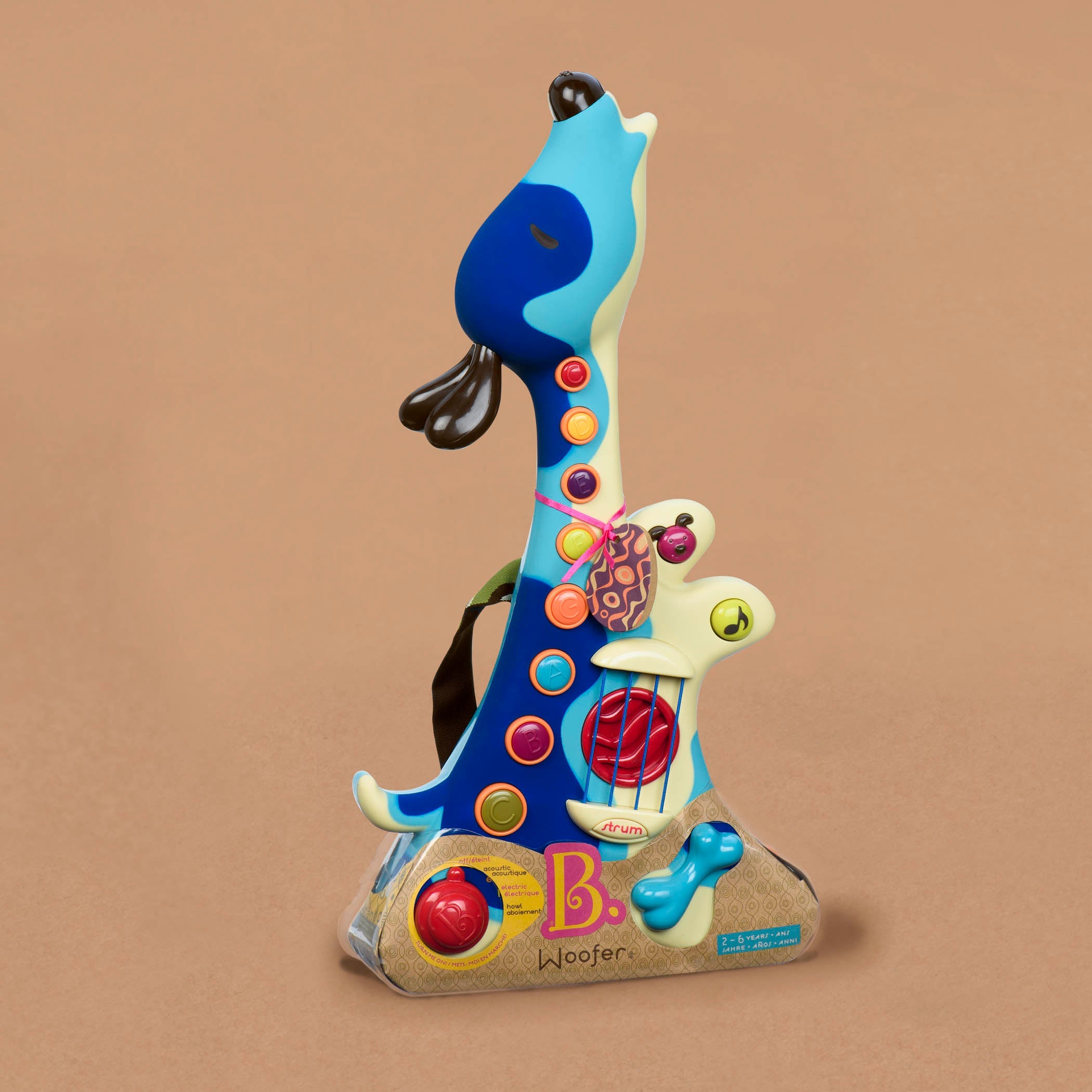 De Woofer hondengitaar van het Canadese merk B.toys speelt muziek en laat het kind er ook zijn eigen liedjes op maken.