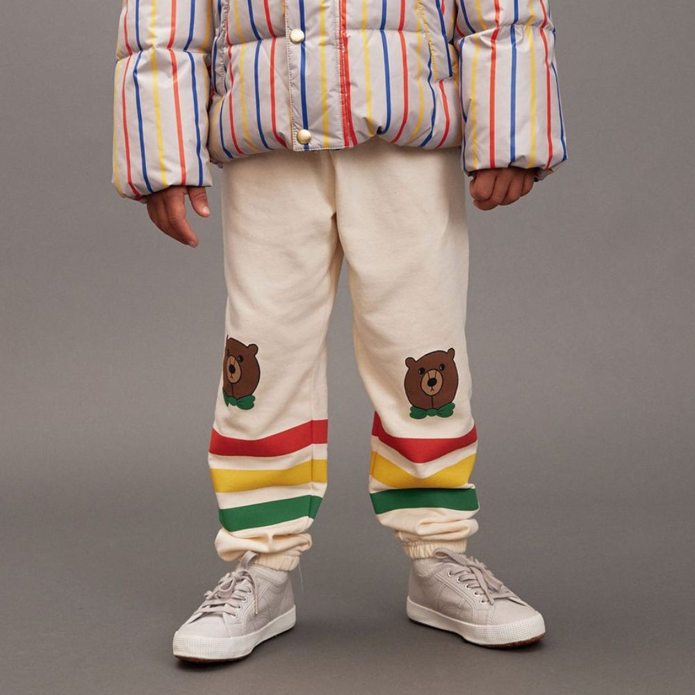 Kinder joggingbroek Bear stripe ecru van Mini Rodini.