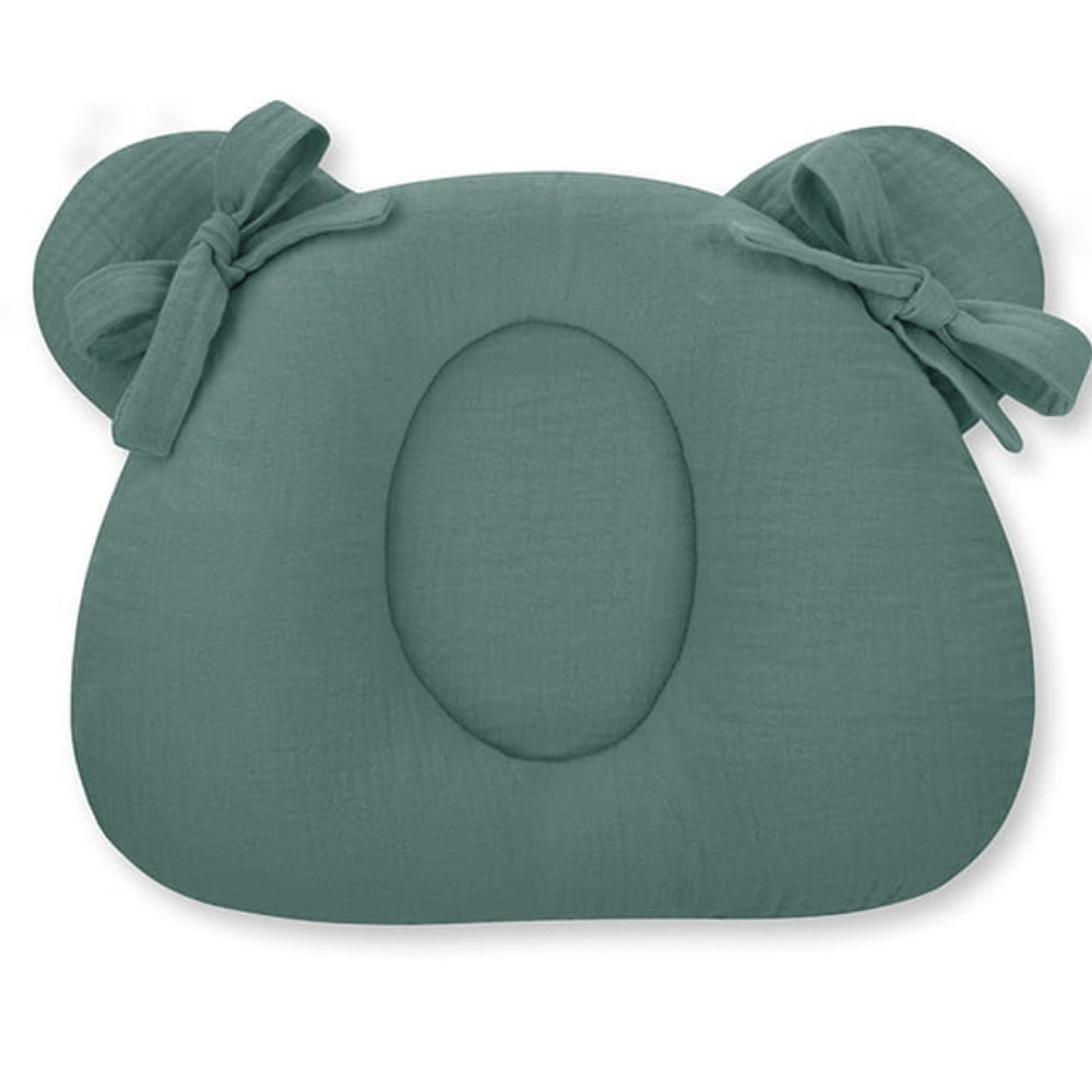 Het Sleepee babykussen is gemaakt van zachte katoenen mousseline en heeft de vorm van een teddybeerhoofd.