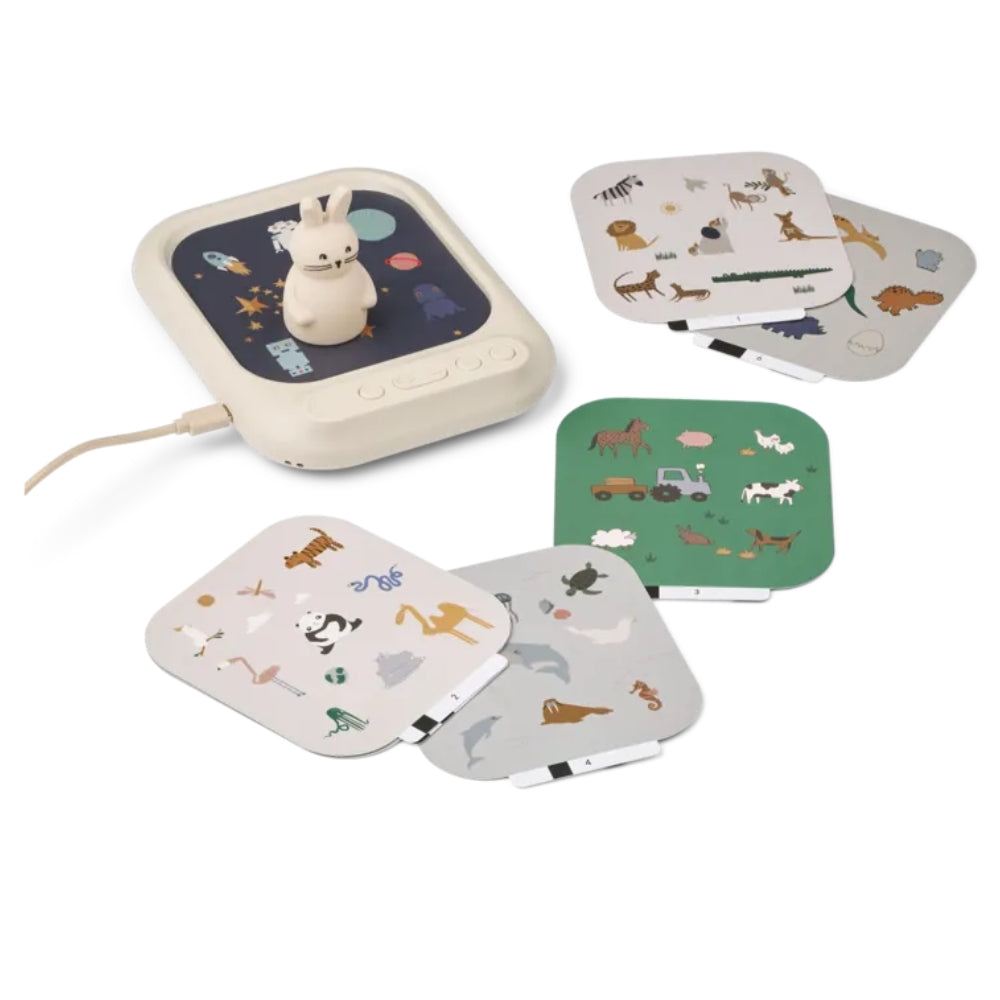 Met dit unieke aanbod van Liewood kunnen peuters kiezen uit zes thema-omgevingen - van de ruimte tot een kleine boerderij - en op een intuïtieve manier leren over de geluiden van objecten en dieren.