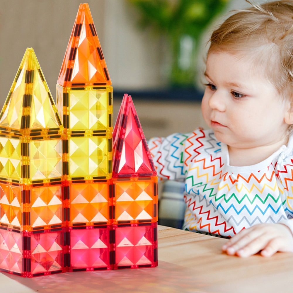 Je hebt geen extra gereedschap of lijm nodig om te bouwen - sterke magneten zorgen ervoor dat de stukken stevig bij elkaar blijven, zodat je nog geavanceerdere ontwerpen kunt maken zonder je zorgen te maken dat het bouwwerk uit elkaar valt.
