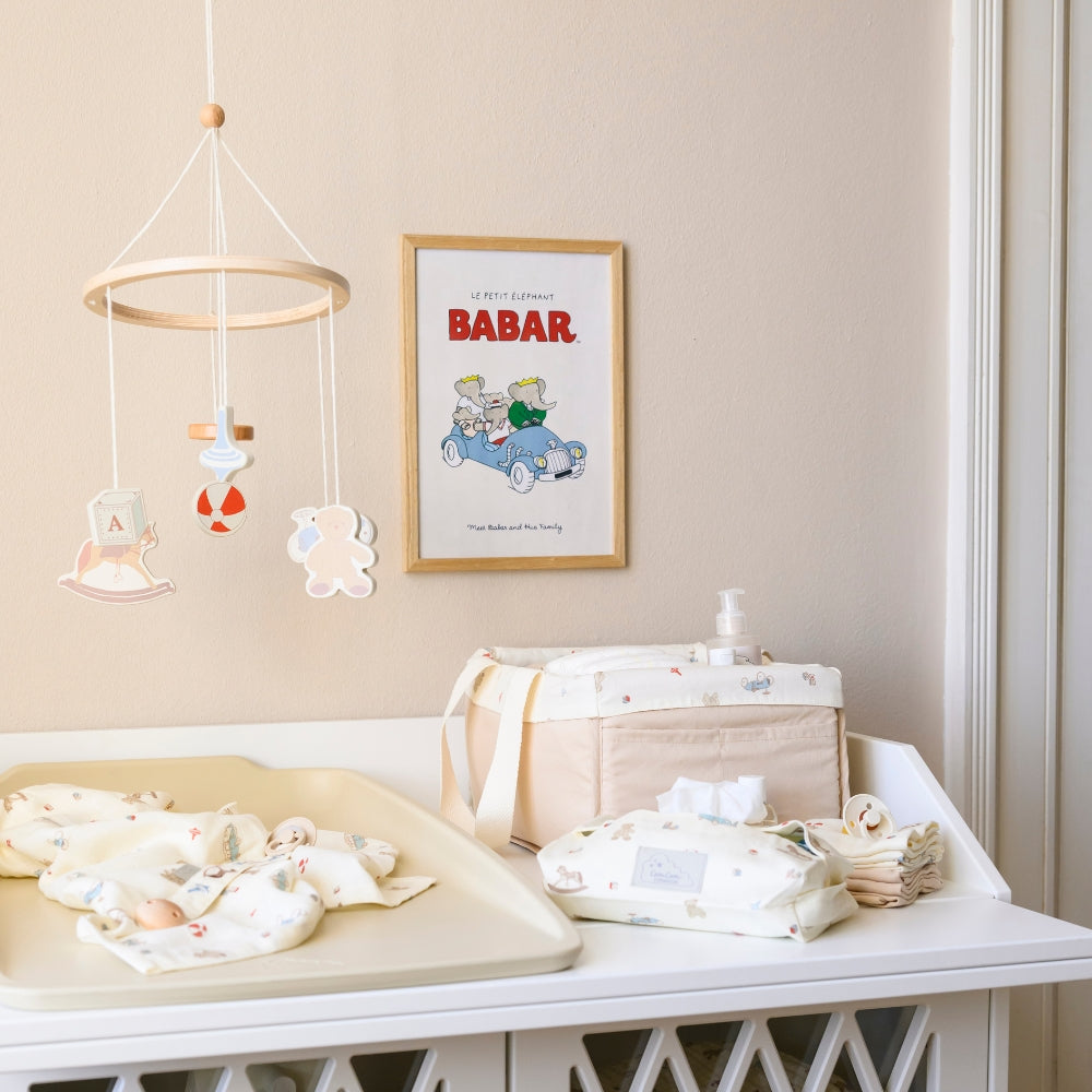 De kinderbedcarrousel van Cam Cam Copenhagen is een subtiele en poëtische decoratie die een rustige, nautische sfeer brengt in de babykamer.
