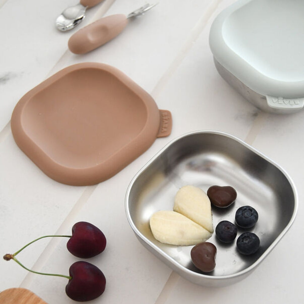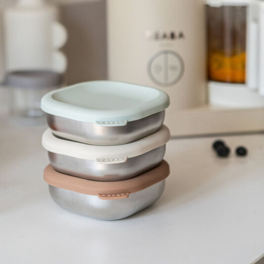 Beaba Roestvrijstalen bakjes voor levensmiddelen met siliconen deksel 3 st. Natuurlijk