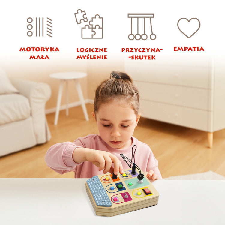 Het Montessori manipulatiebord voor kinderen met schakelaars en LED-lampjes van Topbright is een wereld van interactief speelplezier.