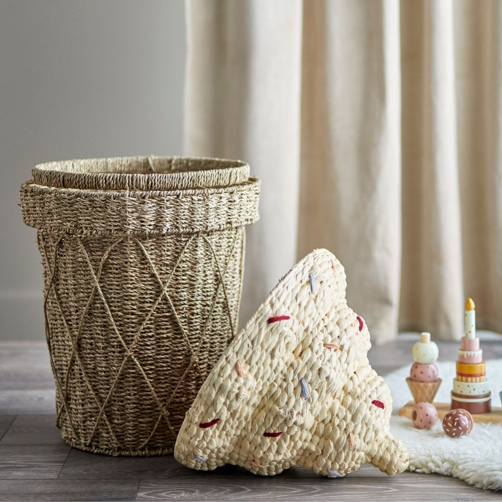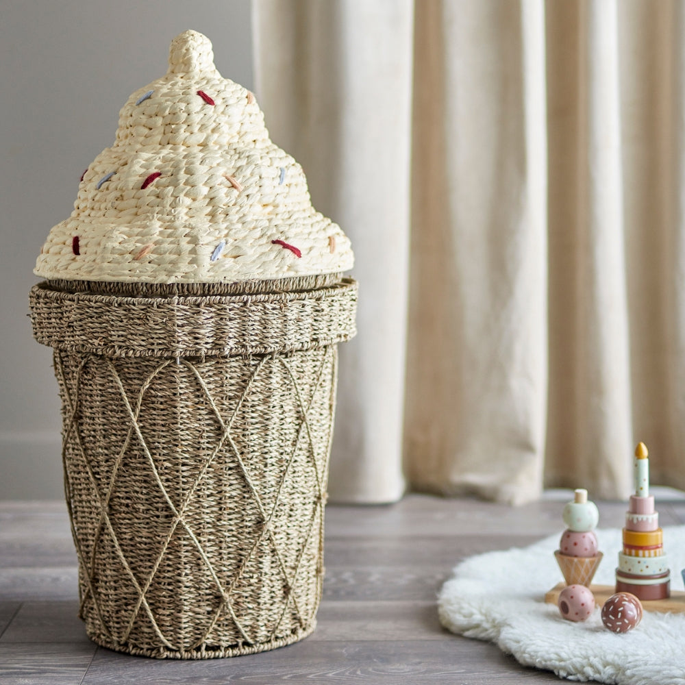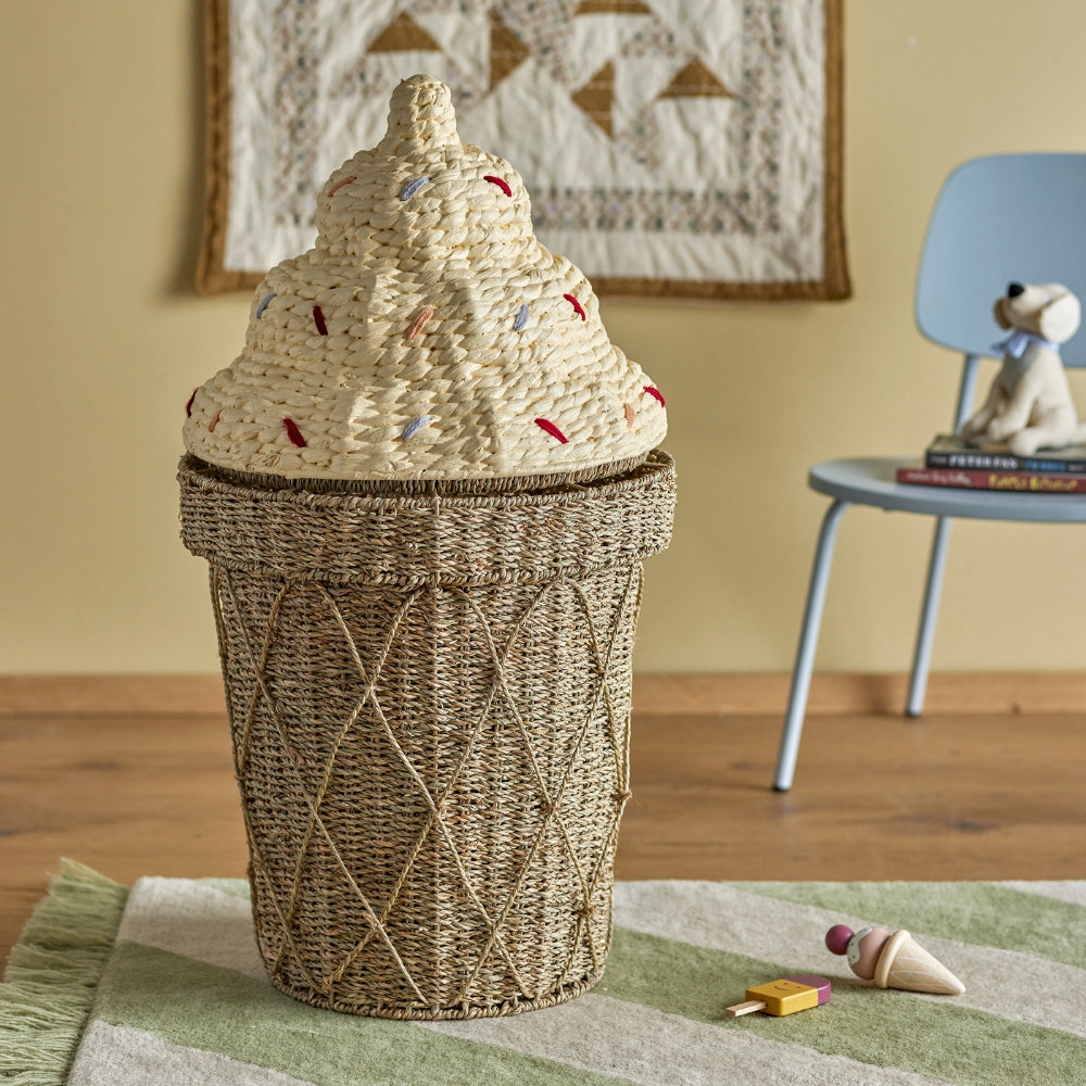Bloomingville Speelgoedmand in ijsvorm met deksel Cillie Water Seagrass