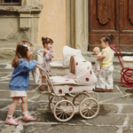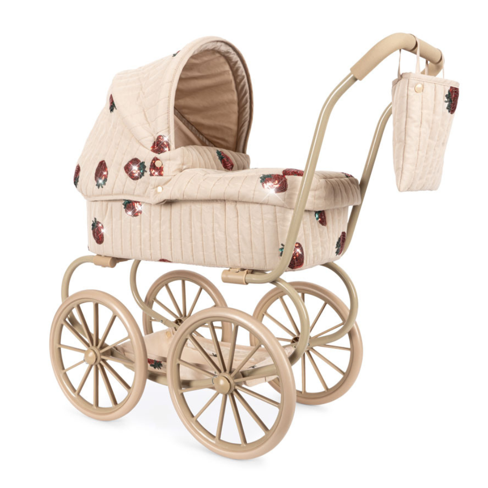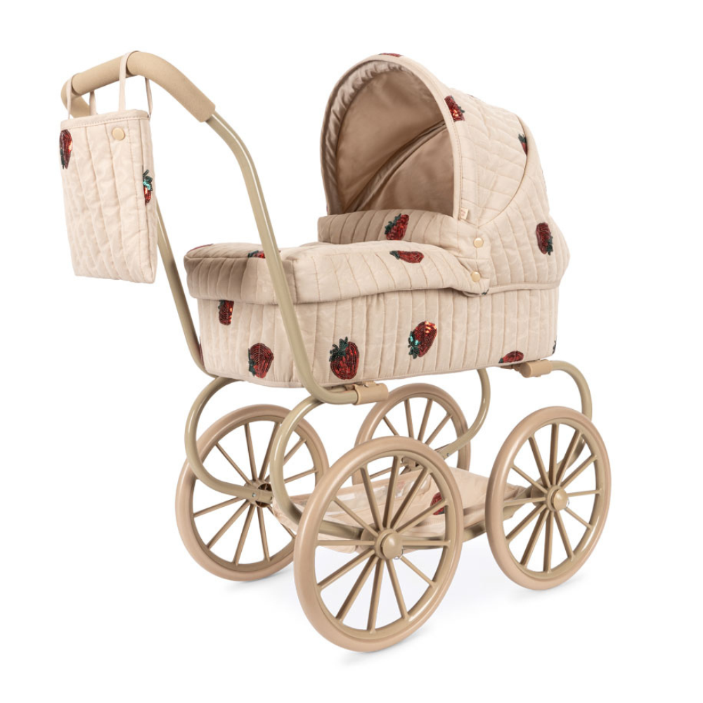 De Konges Slojd Poppenwagen is een charmante, retro geïnspireerde versie van de klassieke kinderwagen, ontworpen met kleine poppenverzorgers in het achterhoofd.