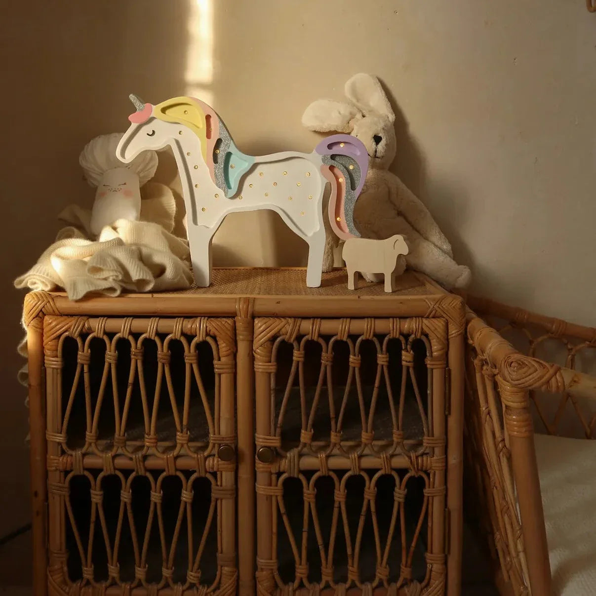 De Little Lights lamp in de vorm van een eenhoorn is de perfecte aanvulling op de kinderkamer en creëert een magische sfeer tijdens het spelen en 's avonds tijdens het lezen.