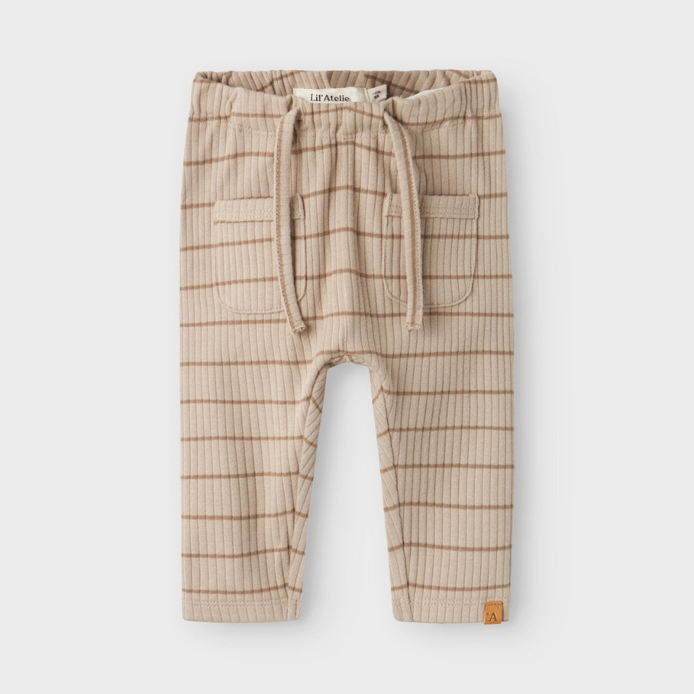 De babybroeken van Lil' Atelier zijn een combinatie van comfort, kwaliteit en tijdloze stijl. Het delicate geribbelde patroon in beige tinten geeft ze een subtiele charme, terwijl de elastische tailleband zorgt voor volledige bewegingsvrijheid voor dagelijks spelen en ontspannen.