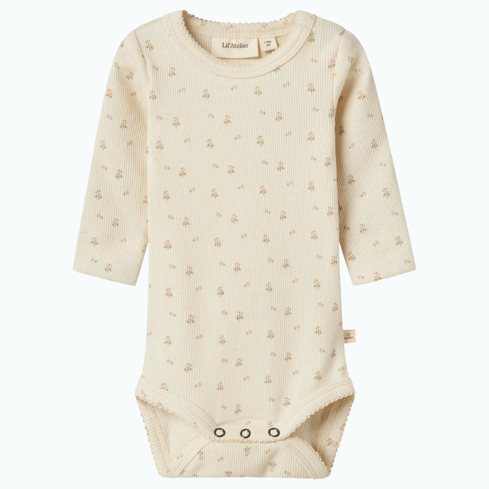 Lil' Atelier baby meisjes body slank Turtledove Bloem NBFGAGO