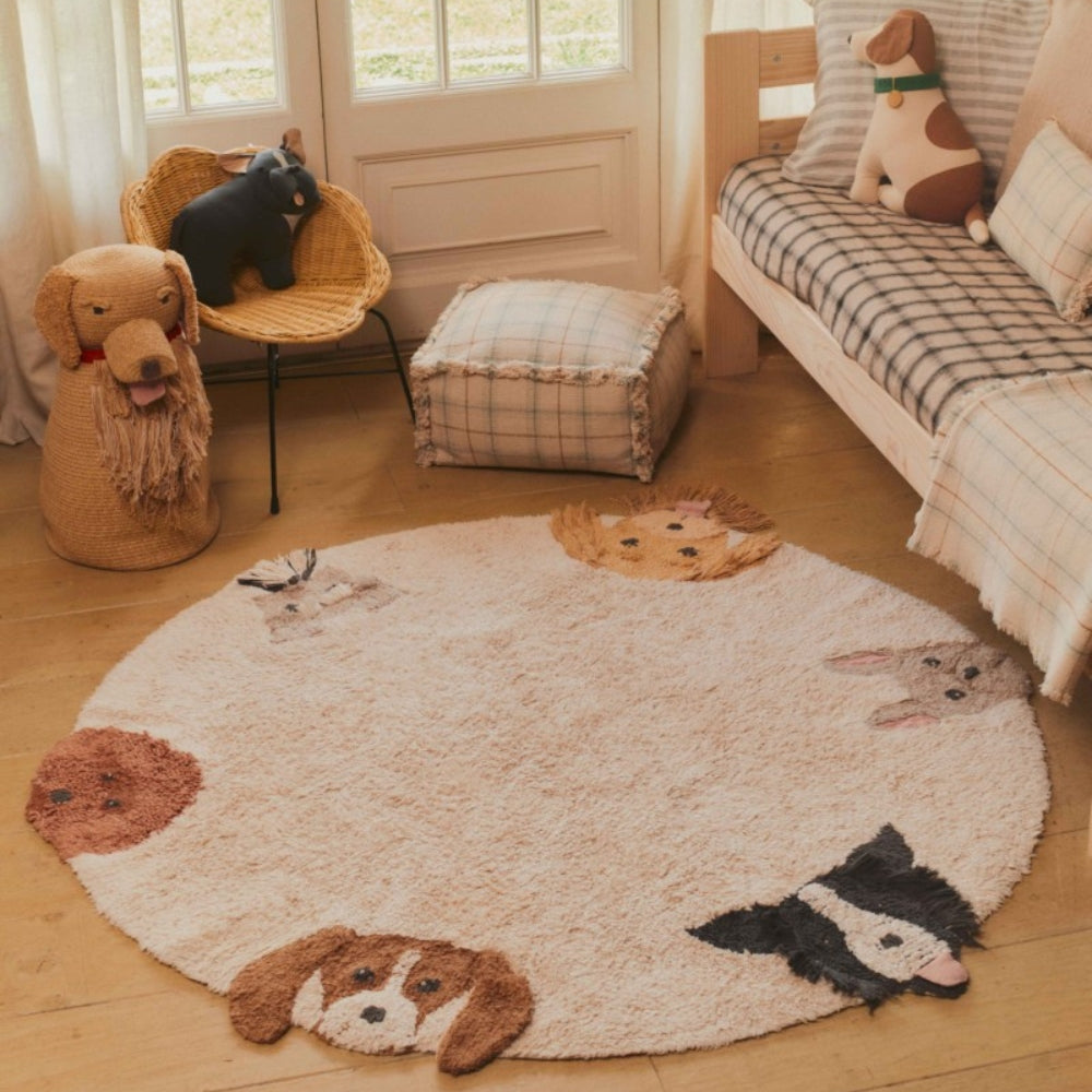 Het Lorena Canals vloerkleed uit de Dogs Wouf Wouf! collectie heeft een interactief ontwerp dat kleintjes aanmoedigt om te ontdekken, aan te raken en te spelen.