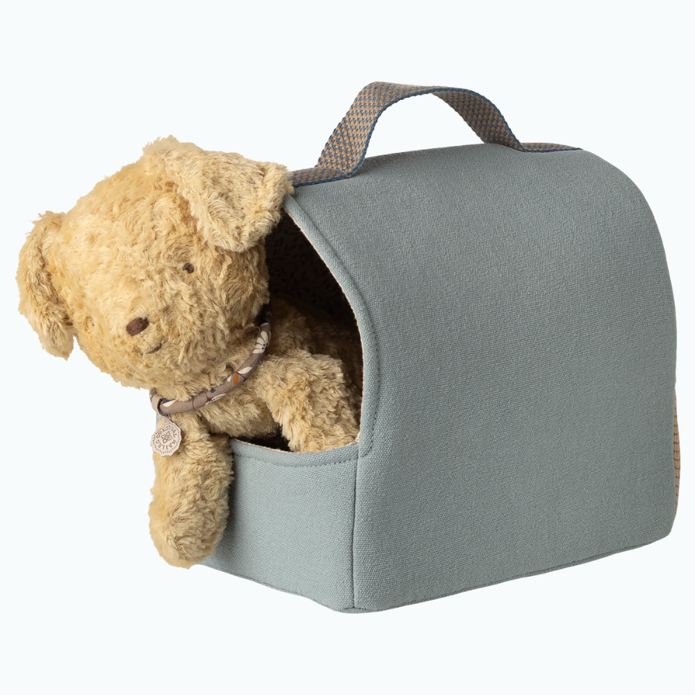 De Toy Puppy Bag van Maileg is een schattig accessoire waarmee je kind zijn of haar favoriete huisdier mee kan nemen op reis.