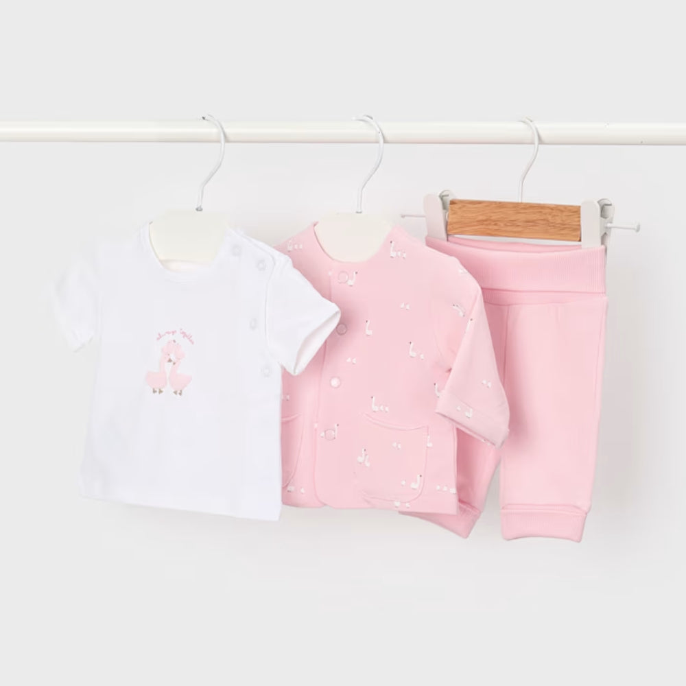 Mayoral 3-delig trainingspak voor babys met sweater, broek en T-shirt Baby Pink