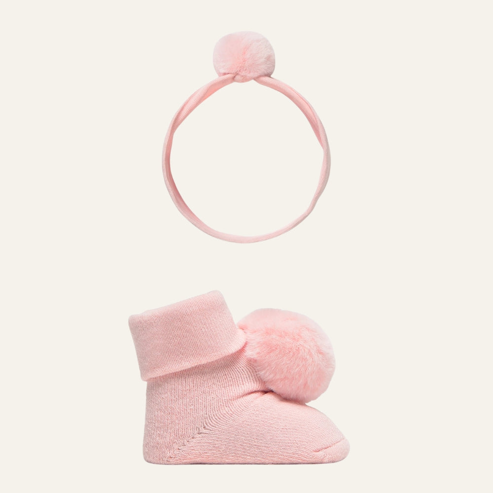 De sokken en hoofdband voor pasgeborenen zijn voorzien van schattige pompons en subtiele versieringen, waardoor de set geschikt is voor dagelijks gebruik, maar ook voor speciale gelegenheden of familiefoto's.