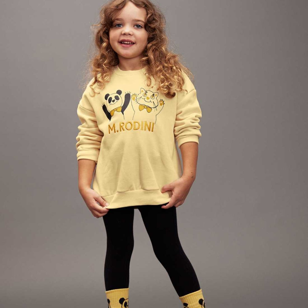 Mini Rodini Kinder Sweatshirt Panda & Kat Geel