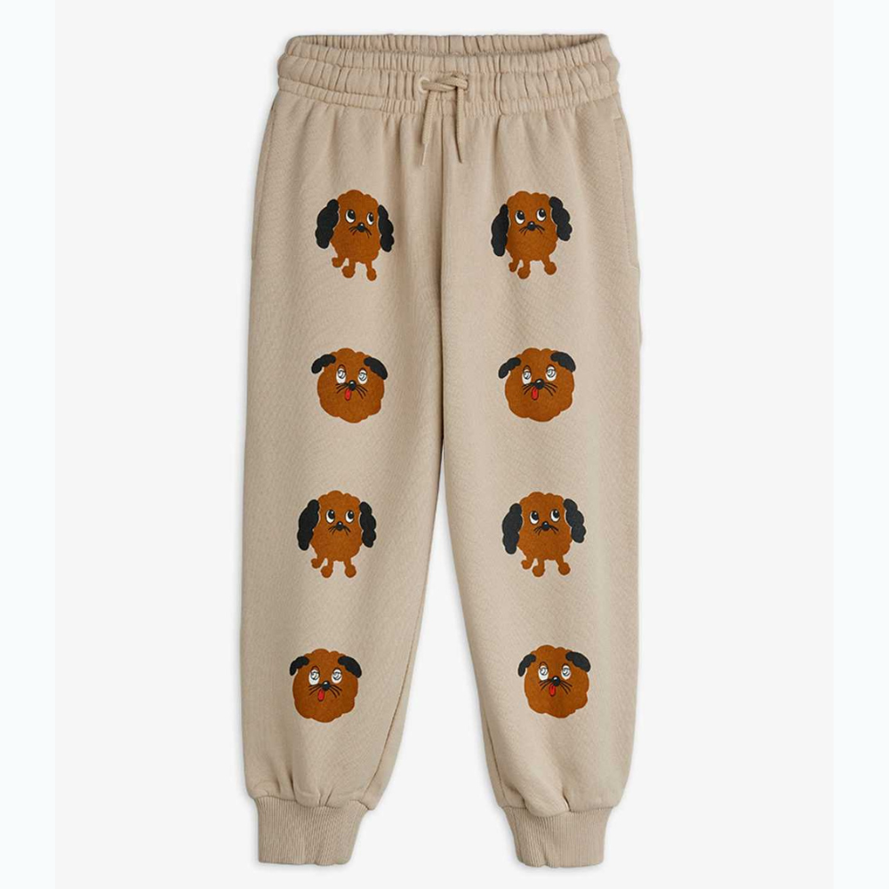 Door de opvallende hondenprint valt de Mini Rodini joggingbroek op tussen de alledaagse kleding en kinderen dragen hem graag.