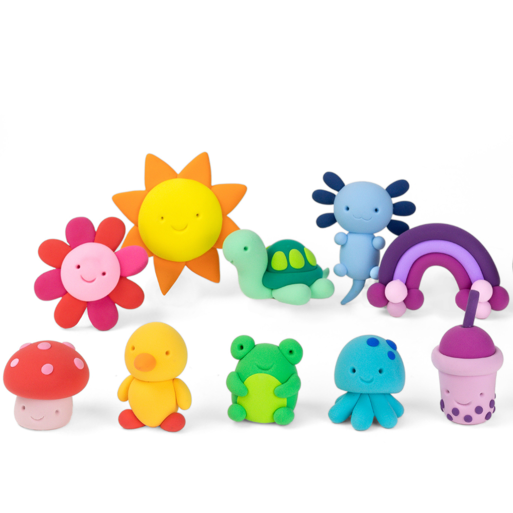 De zachte, lichtgewicht en tastbare plastic massa moedigt kneden, plakken en boetseren aan - volgens de geïllustreerde instructies of hun eigen fantasie.