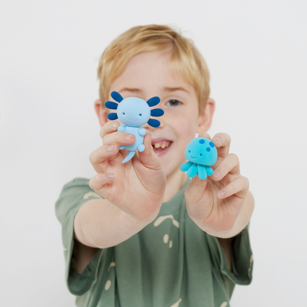 Zacht, lichtgewicht en aangenaam om aan te raken, de plastic massa moedigt kneden, plakken en boetseren aan - volgens de geïllustreerde instructies of hun eigen fantasie.