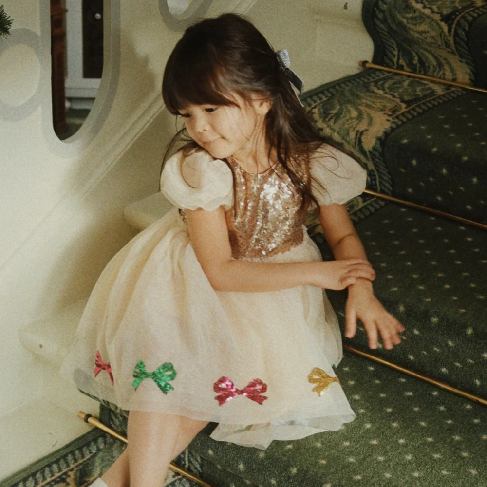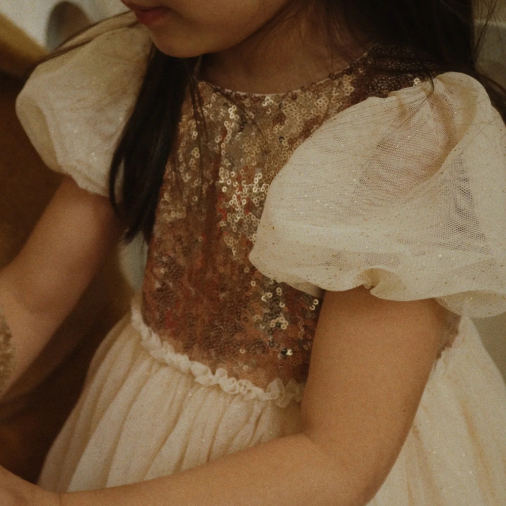 Kinderjurk met paillettentop en gelaagde tule rok van Konges Slojd.