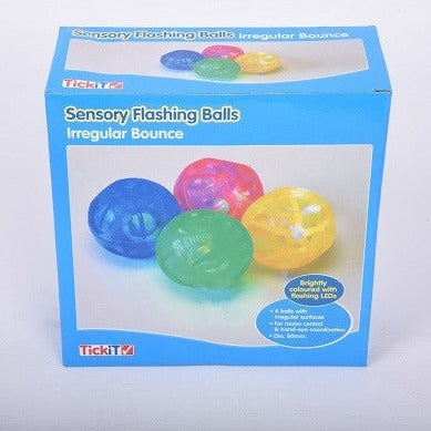 Zintuiglijke ballen met textuur van TickiT die oplichten en knipperen als er op gestuiterd wordt.