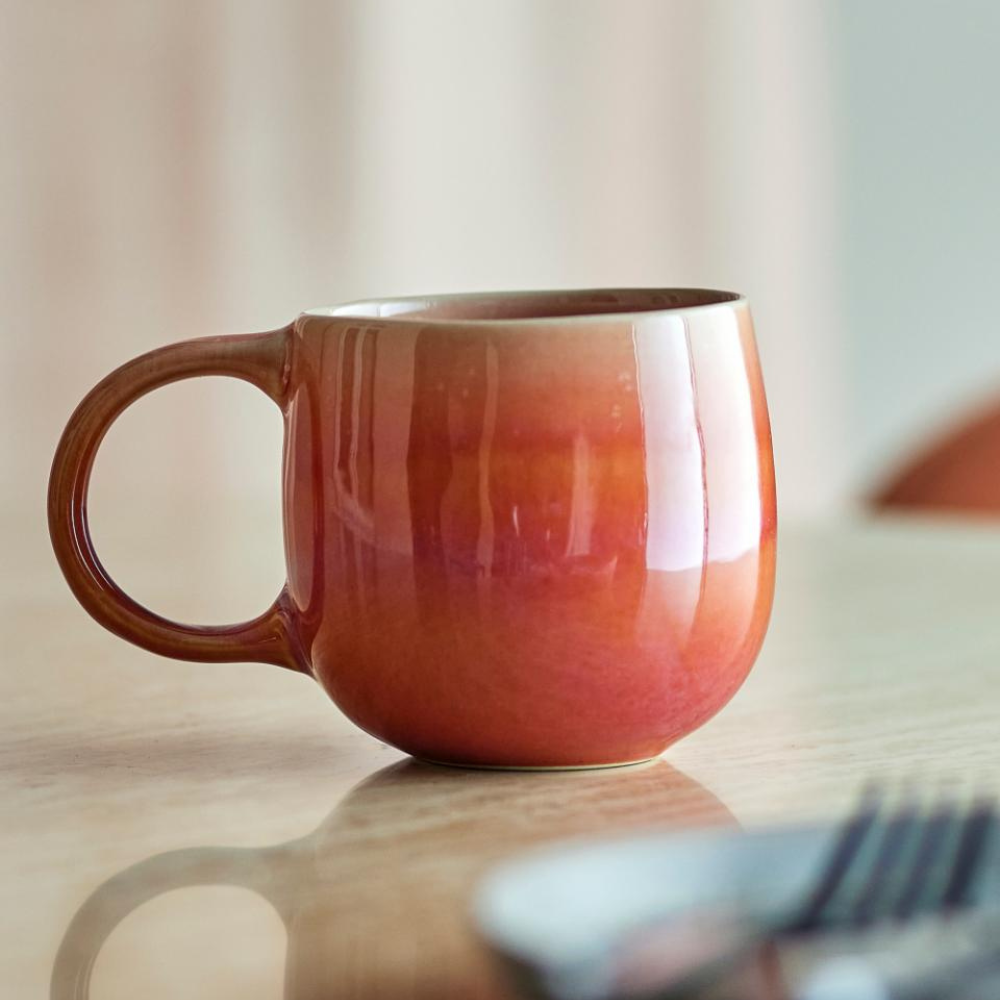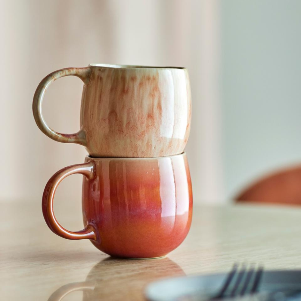 De Roselyn set van Bloomingville bestaat uit vier elegante mokken met de glans en warme rozetinten van het reactieve glazuur.