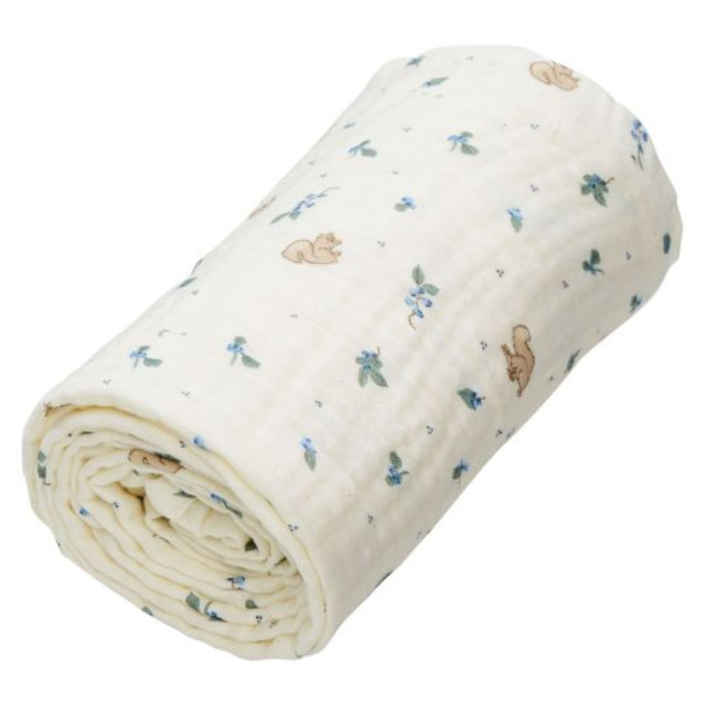 De mousseline deken is ideaal voor dutjes, als omslagdoek na het badderen en als zachte laag voor onderweg.