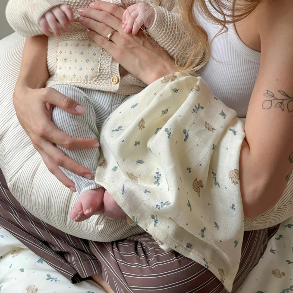 De zachte biokatoenen mousseline omhult de huid en is geschikt voor elke situatie waarin je iets lichts, absorberends en babyvriendelijk nodig hebt.