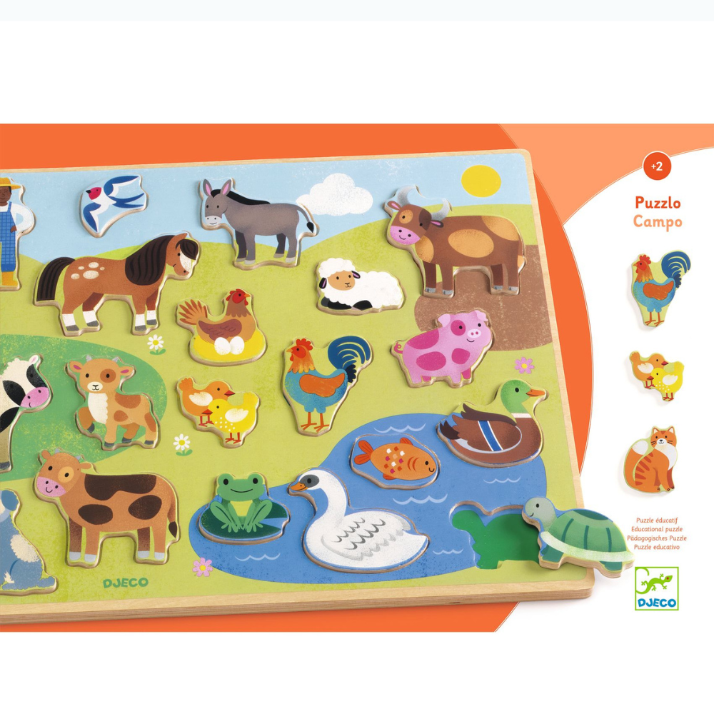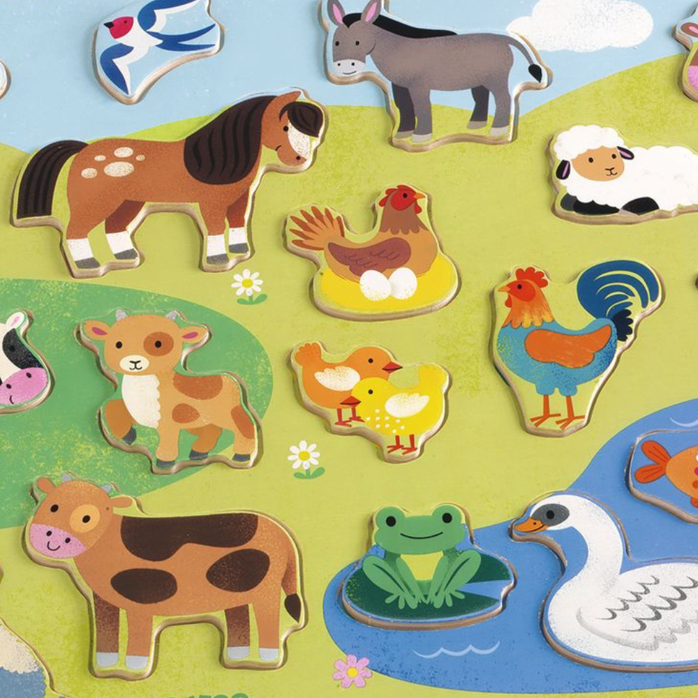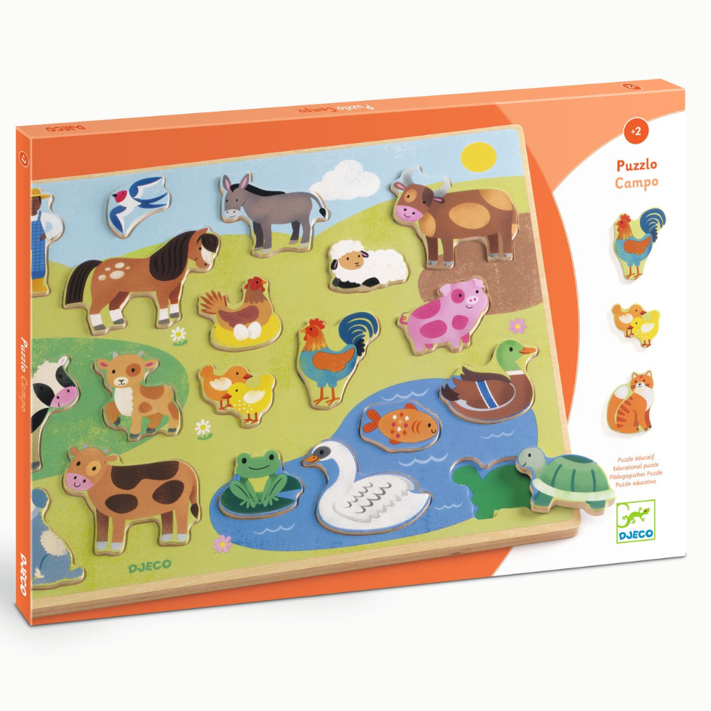 Een houten puzzel met een boerderijthema van Djeco.