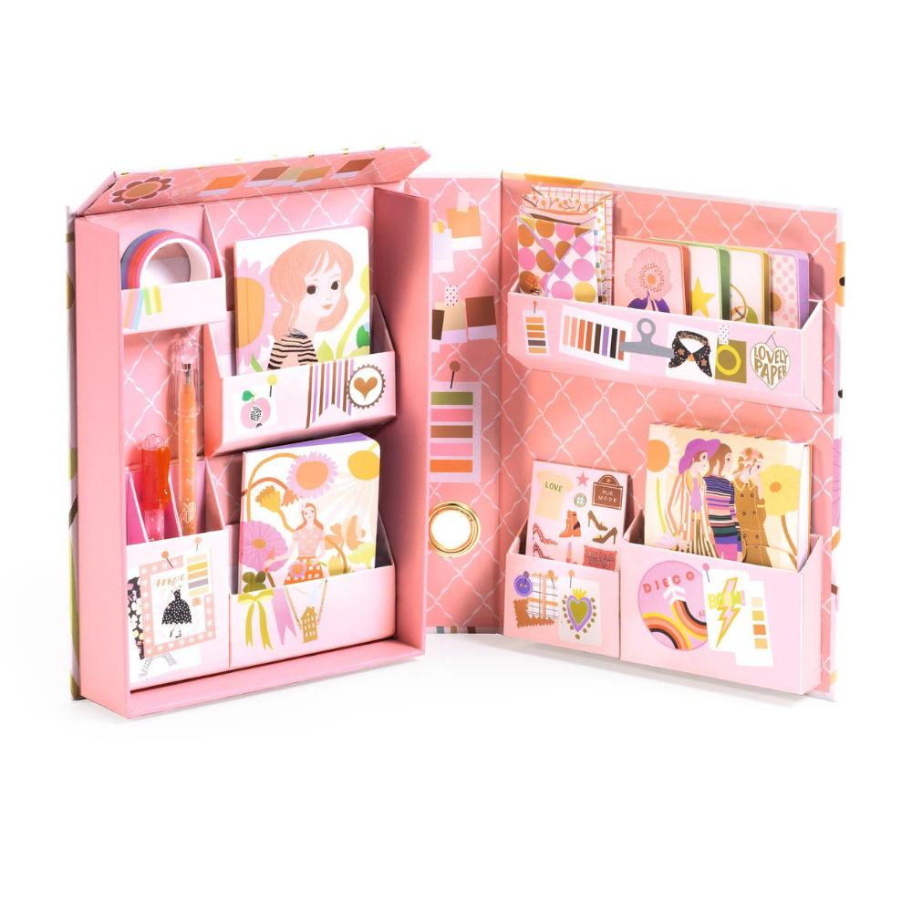 De prachtige illustraties van Djeco moedigen je aan om je eigen verhalen, brieven en uitnodigingen te maken, en het geheel is geweldig voor thuis en op reis.