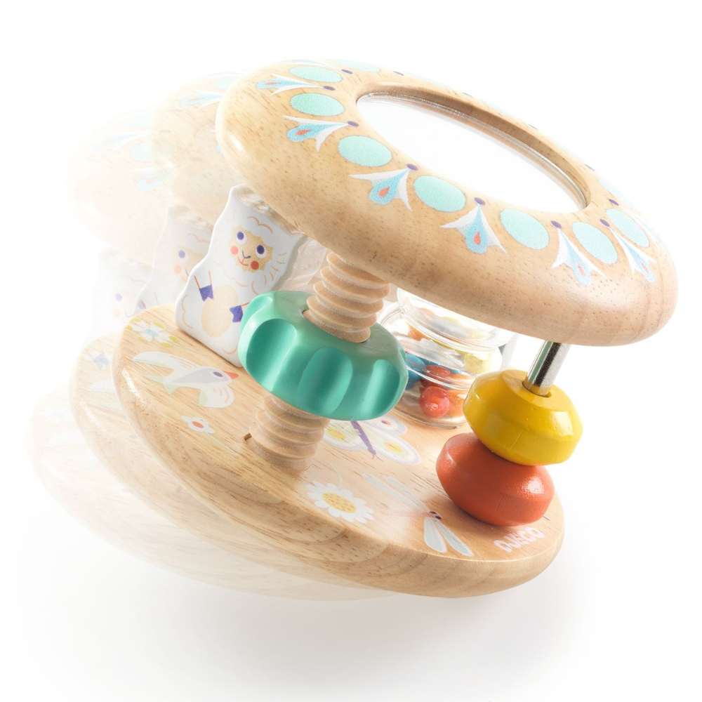 Deze rammelaar van Djeco ondersteunt het dagelijks spelen door baby's handen en gezichtsvermogen te stimuleren vanaf de leeftijd van 10 maanden.