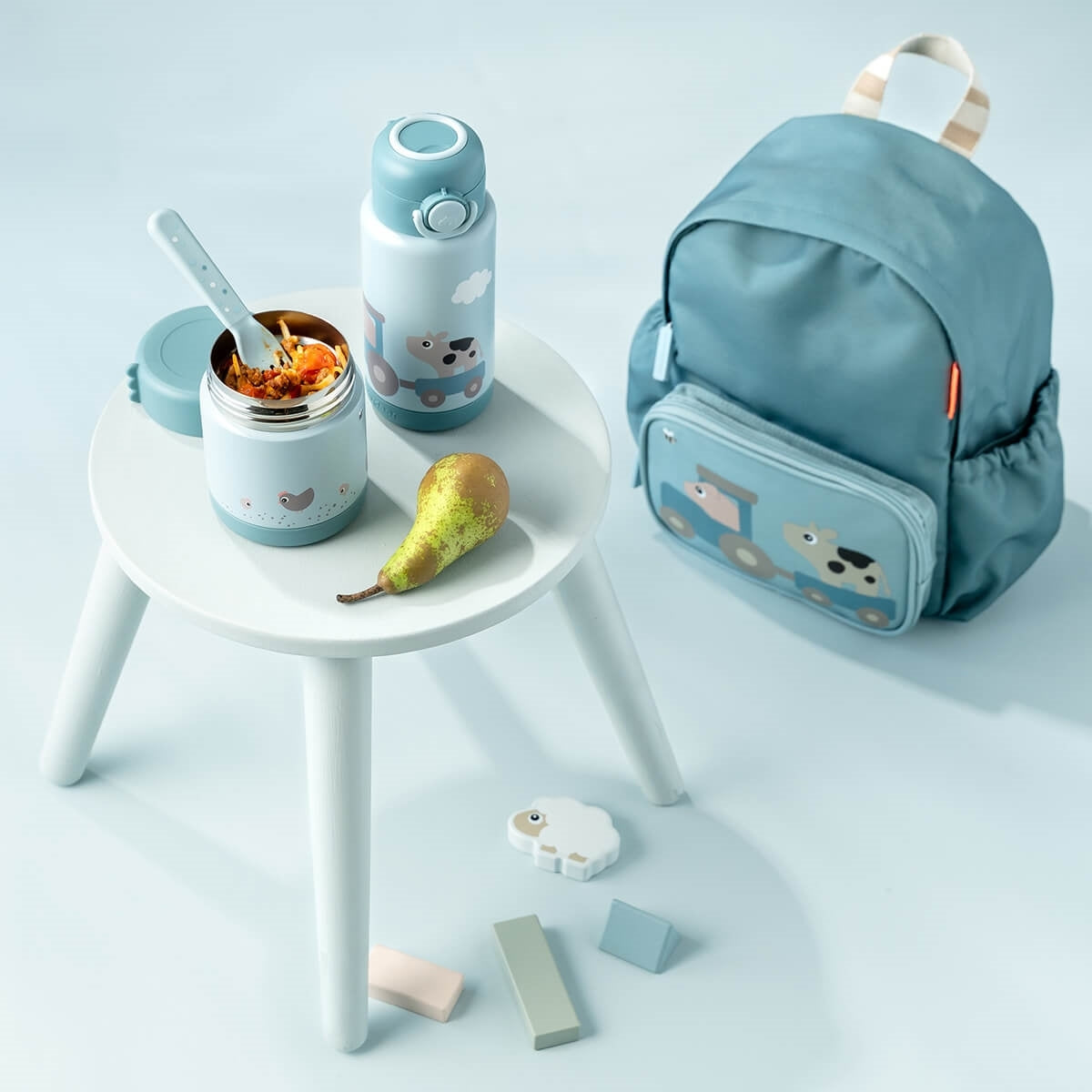 Done by Deer Baby Lunch Thermosfles 300ml Tiny Farm Blauw