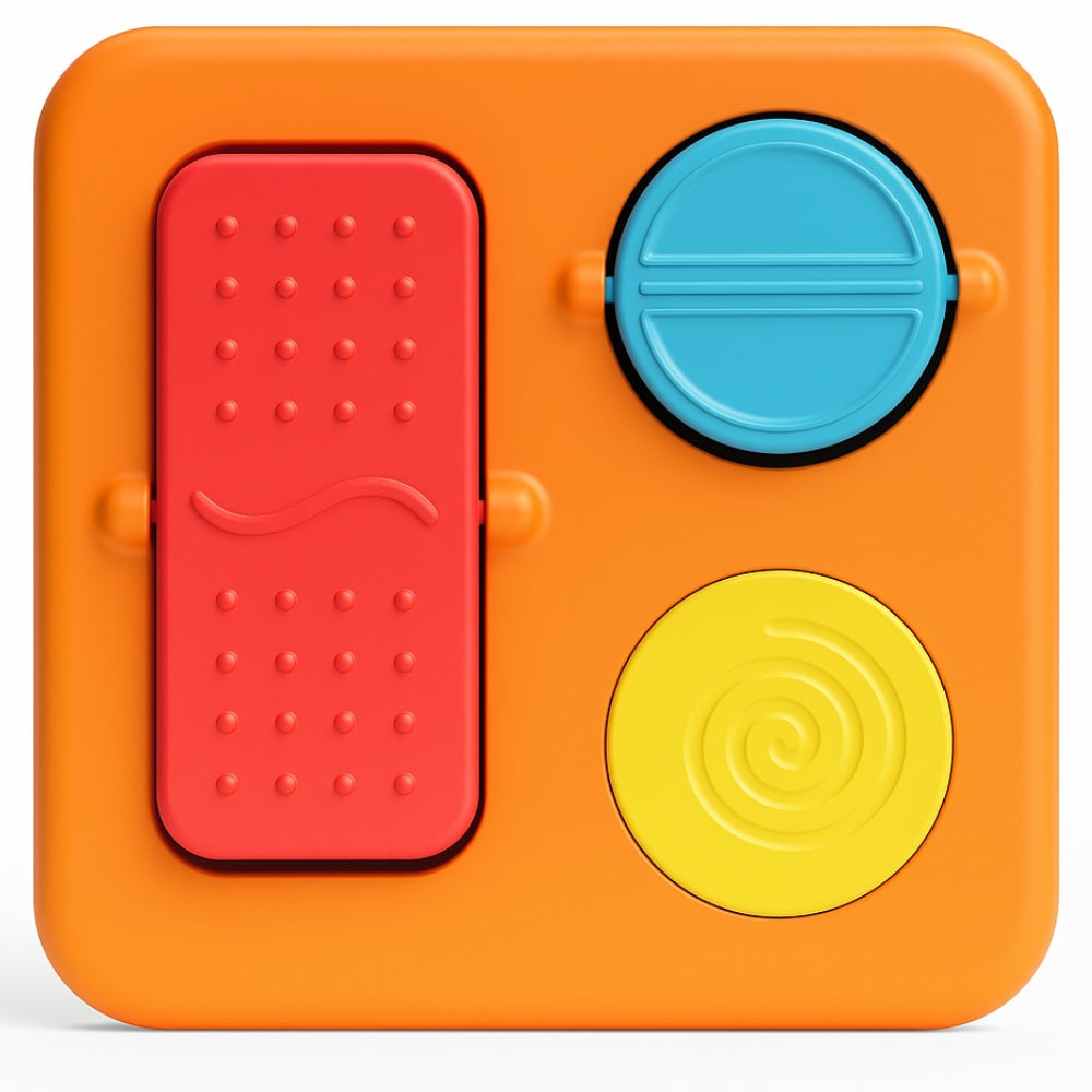 Dit sensorisch vierkant is ontworpen om de aandacht te trekken met intense kleuren en de nieuwsgierigheid te stimuleren door het eenvoudige maar boeiende spel van aan- en uitzetten - activiteiten waar peuters dol op zijn.