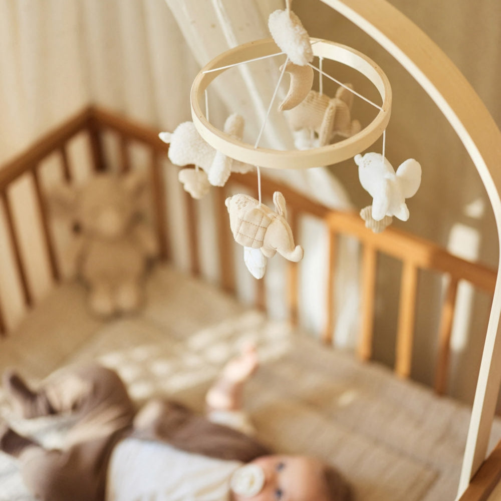 Als je op zoek bent naar een accessoire dat past bij het interieur en de dagelijkse rituelen van je baby, dan zal de wiegcarrousel van Jollein een schot in de roos zijn.