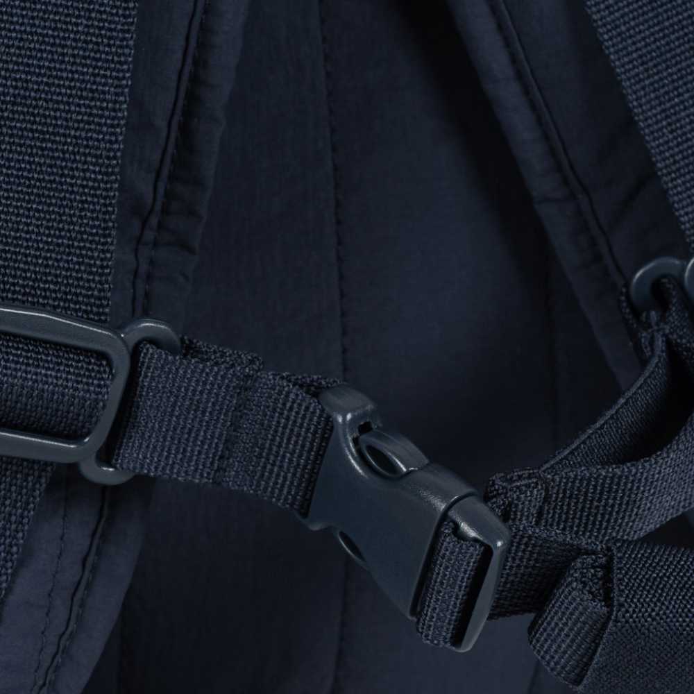 Er is een praktisch flessenvak aan de zijkant, een klein vakje met rits aan de voorkant en de verstelbare borstband stabiliseert de schouders en verdeelt het gewicht gelijkmatig.