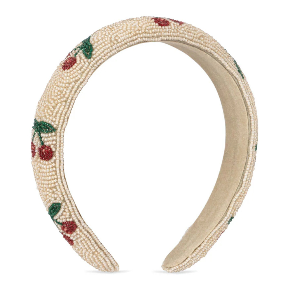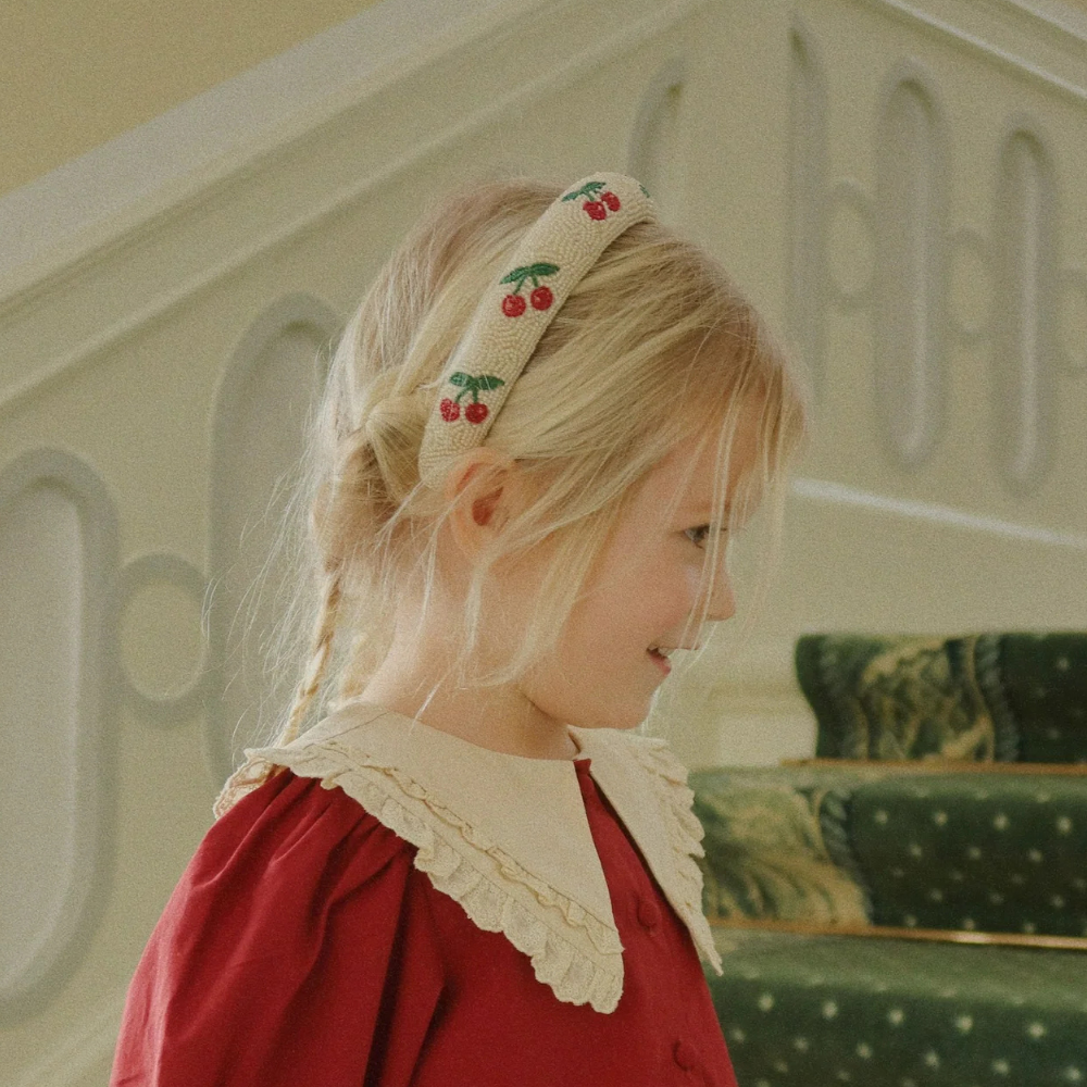 De Konges Slojd haarband heeft handgenaaide parels, waardoor elk stuk one-of-a-kind is en een unieke touch toevoegt aan de stijl.
