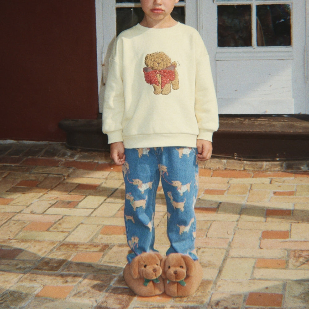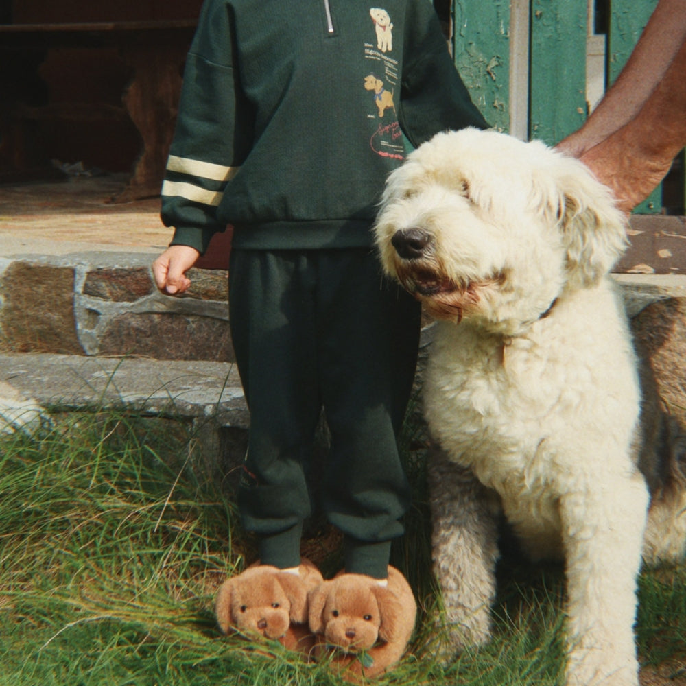 De zachte, pluizige afwerking houdt de voeten altijd warm en gehuld in zachtheid, en het speelse teckelmotief zal zowel kind als ouders doen glimlachen.