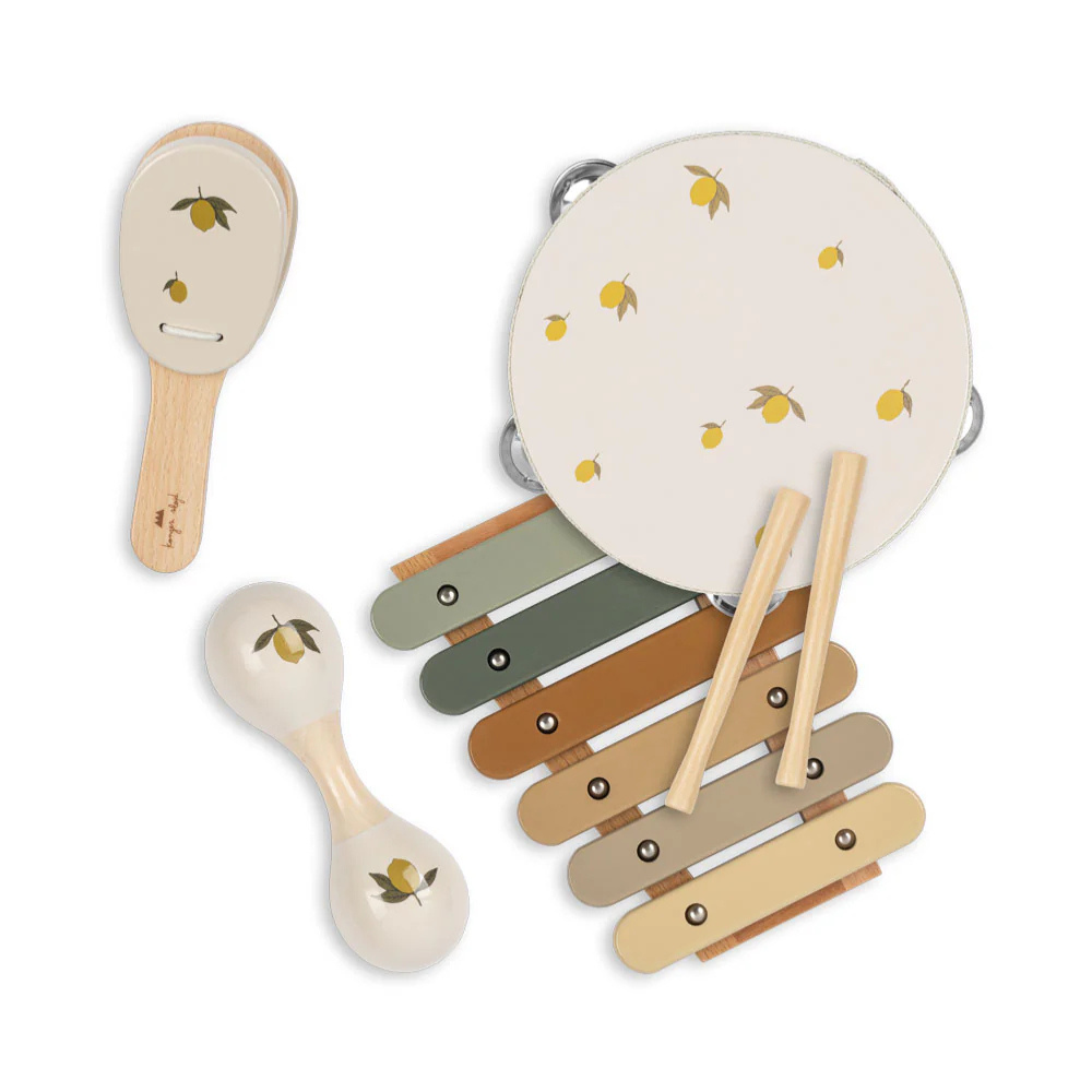 De muziekset bevordert ritme, hand-oog coördinatie en zelfvertrouwen, en is geweldig voor familieplezier en het ontwikkelen van muzikale gevoeligheid.