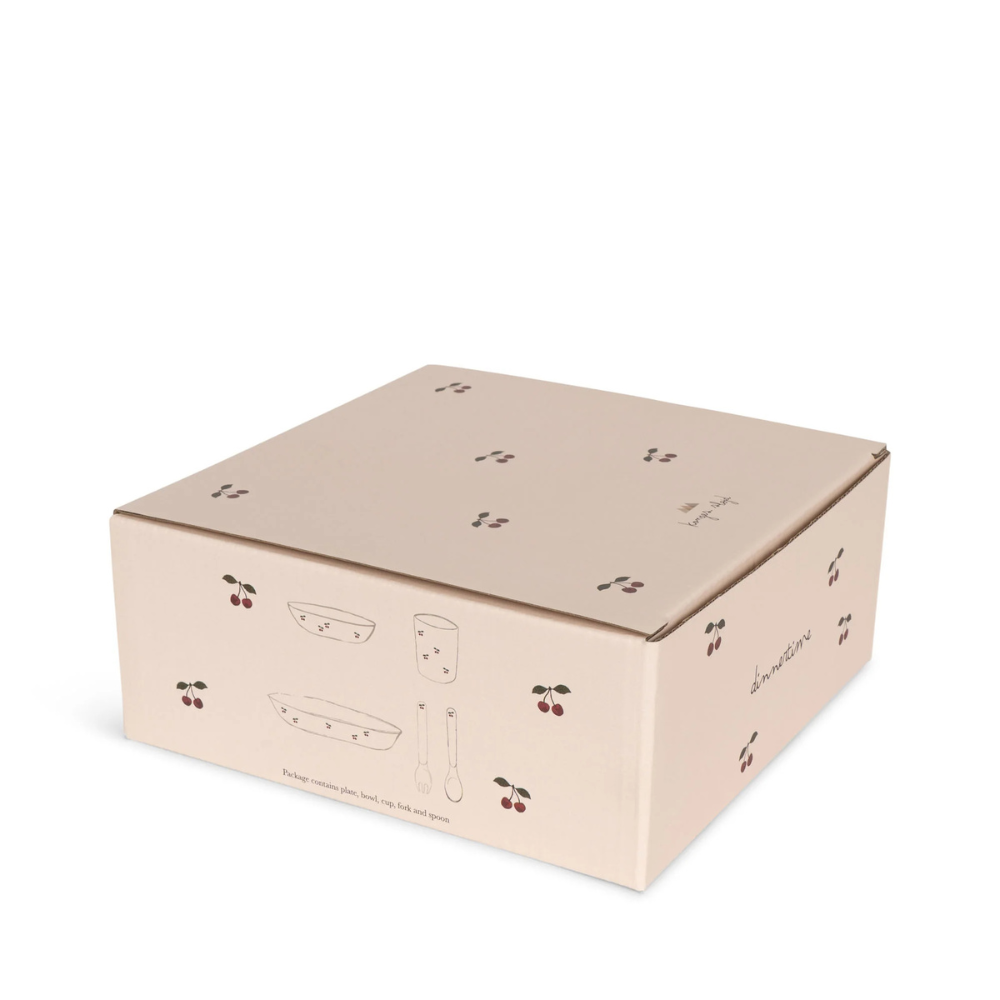 De set is ontworpen door Konges Slojd en is geschikt voor gebruik thuis en onderweg, en het vaatwasserbestendige ontwerp maakt dagelijks onderhoud eenvoudig.