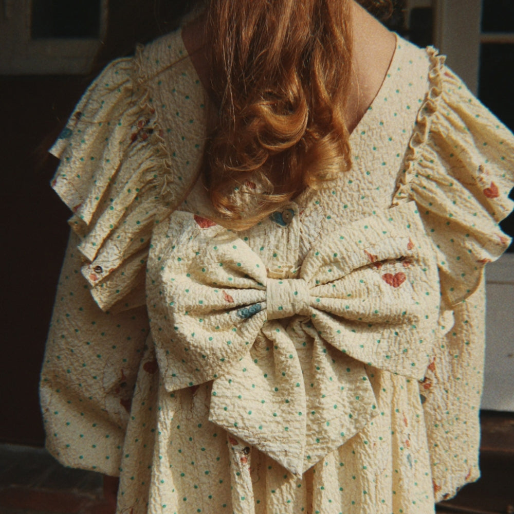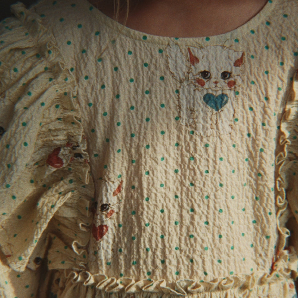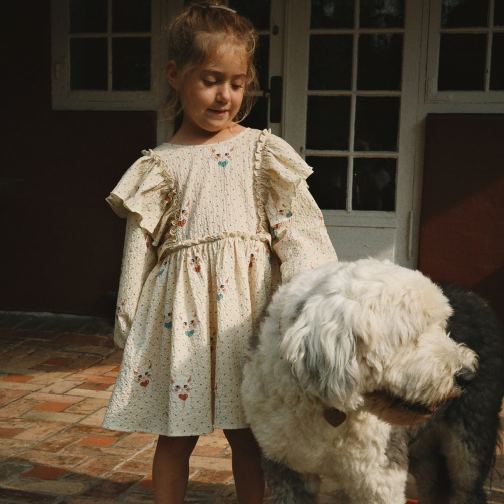 Deze jurk voor meisjes van Konges Slojd is een unieke combinatie van zachtheid, luchtigheid en klassieke stijl.