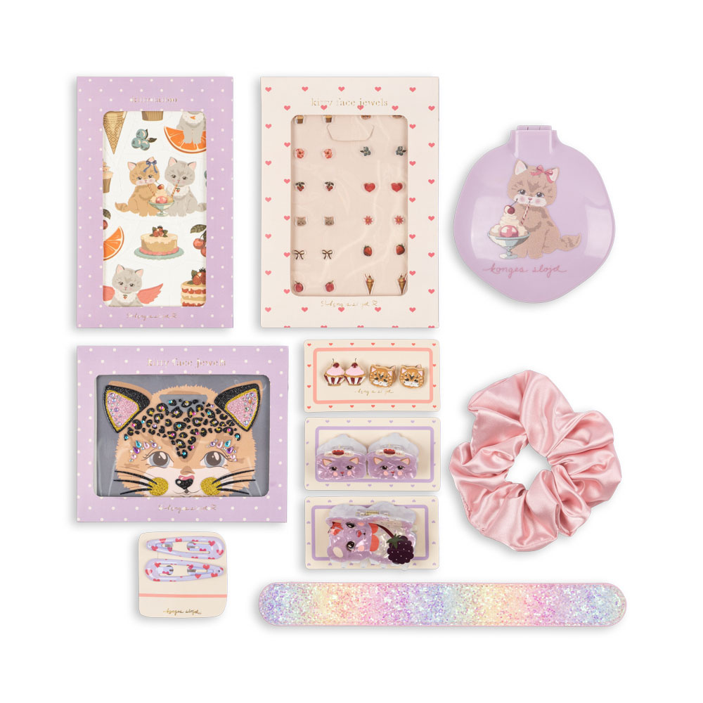 Dieses Accessoire-Set im Koffer von Konges Slojd ist eine praktische, sichere Geschenkwahl - alles hat seinen Platz und geht zurück in den Koffer, so bleibt die Ordnung erhalten.