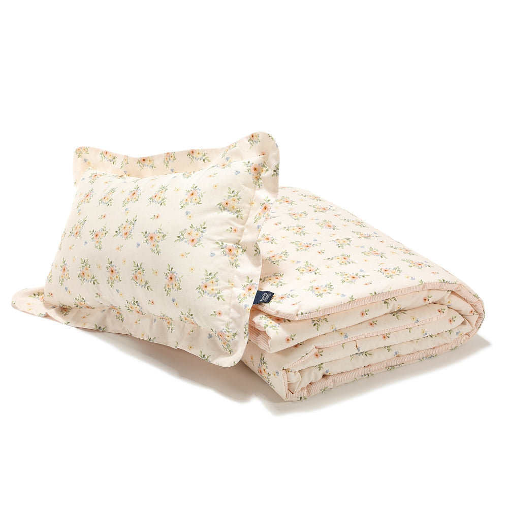 De set bestaat uit een zacht dekbed en kussen met lichte vulling van anti-allergene polyestervezel, die zorgt voor een goede temperatuur, zuurstoftoegang en vochtafvoer, wat resulteert in uitstekend slaapcomfort.