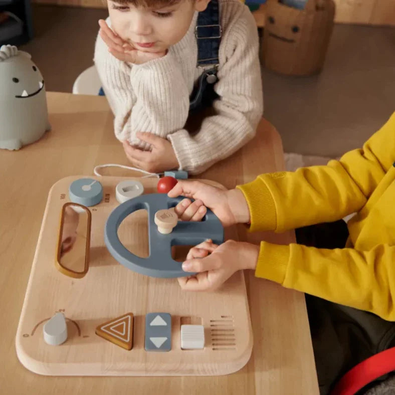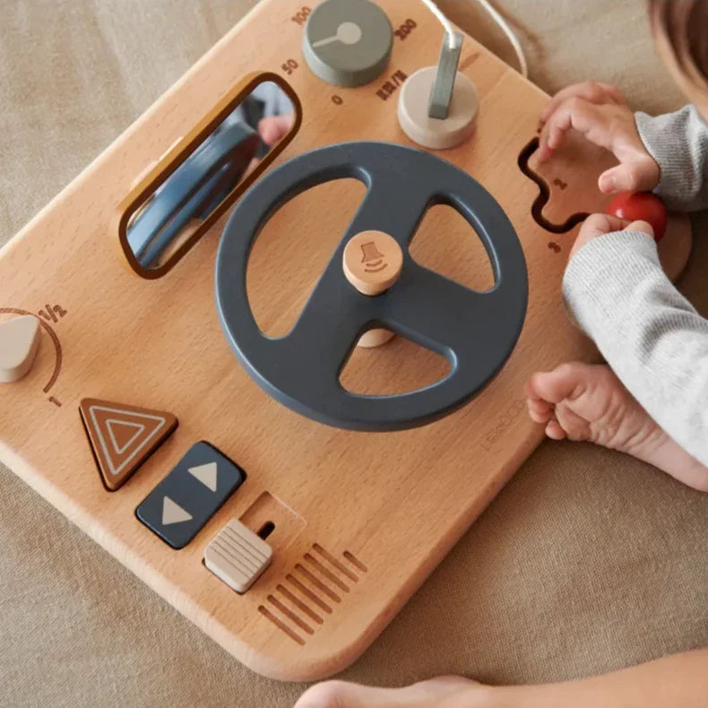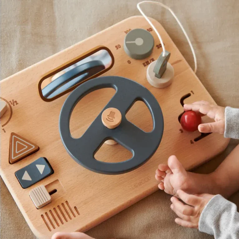 Het manipulatiebord van Liewood helpt ook bij het aanleren van basisvaardigheden.