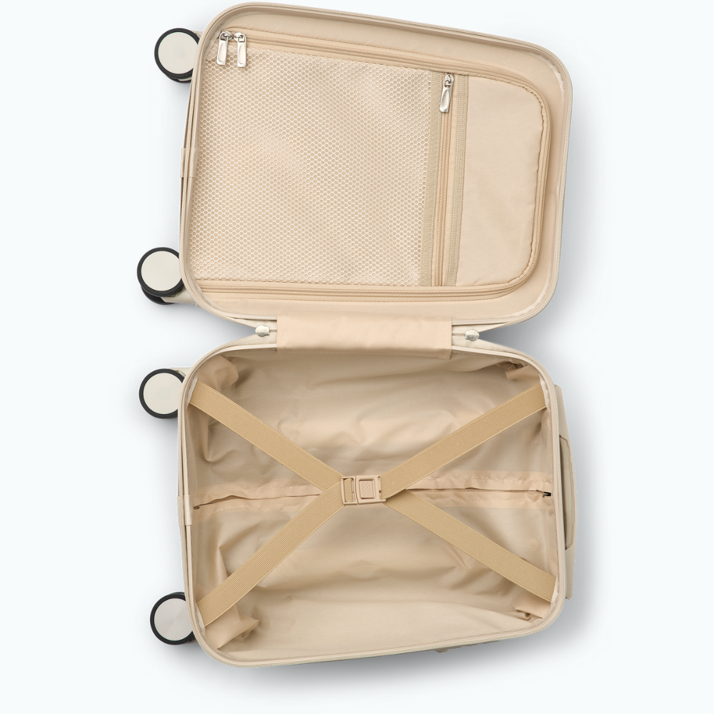 Binnenin vind je een ritsvak en elastische riemen om alles op zijn plaats te houden - dit is de perfecte kinderkoffer voor weekenduitstapjes en vluchten met handbagage.