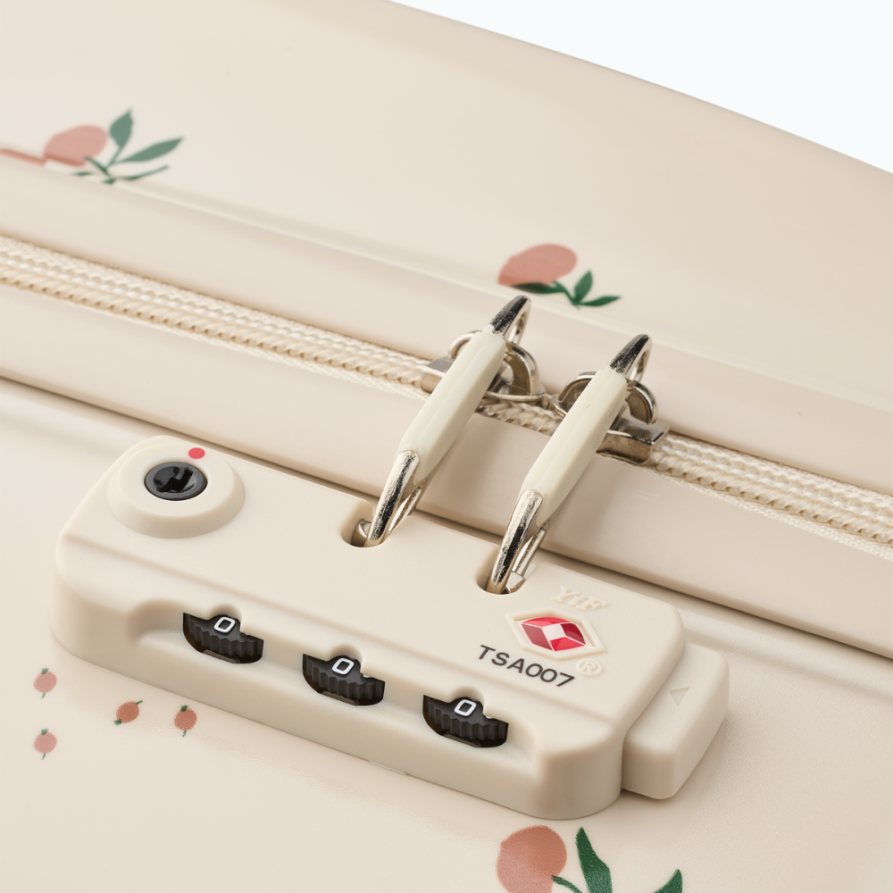 Een TSA-combinatieslot en een gevoerde binnenkant van glad polyester zorgen voor veiligheid en een strakke afwerking.
