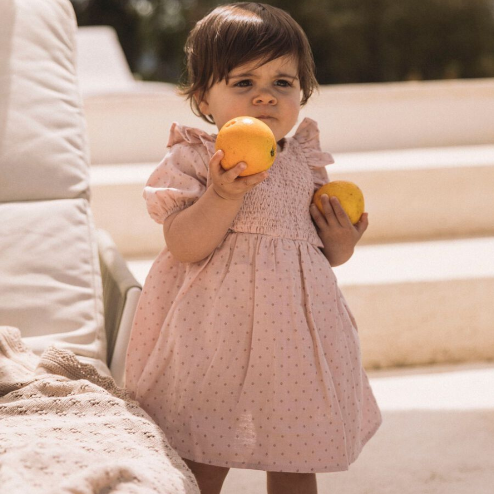 De Lil' Atelier jurk is vriendelijk voor baby's gevoelige huid en houdt haar de hele dag comfortabel.