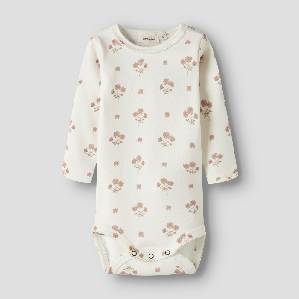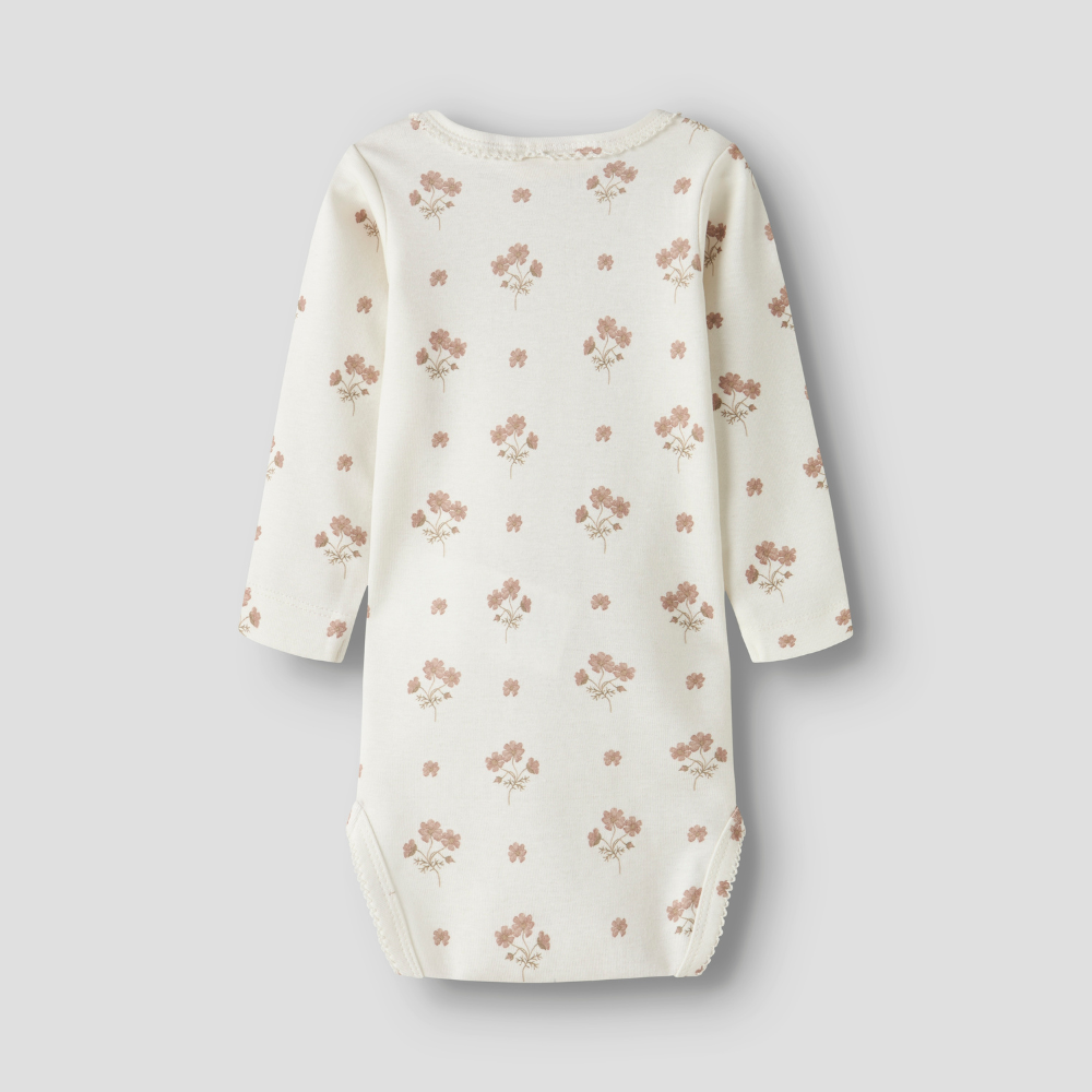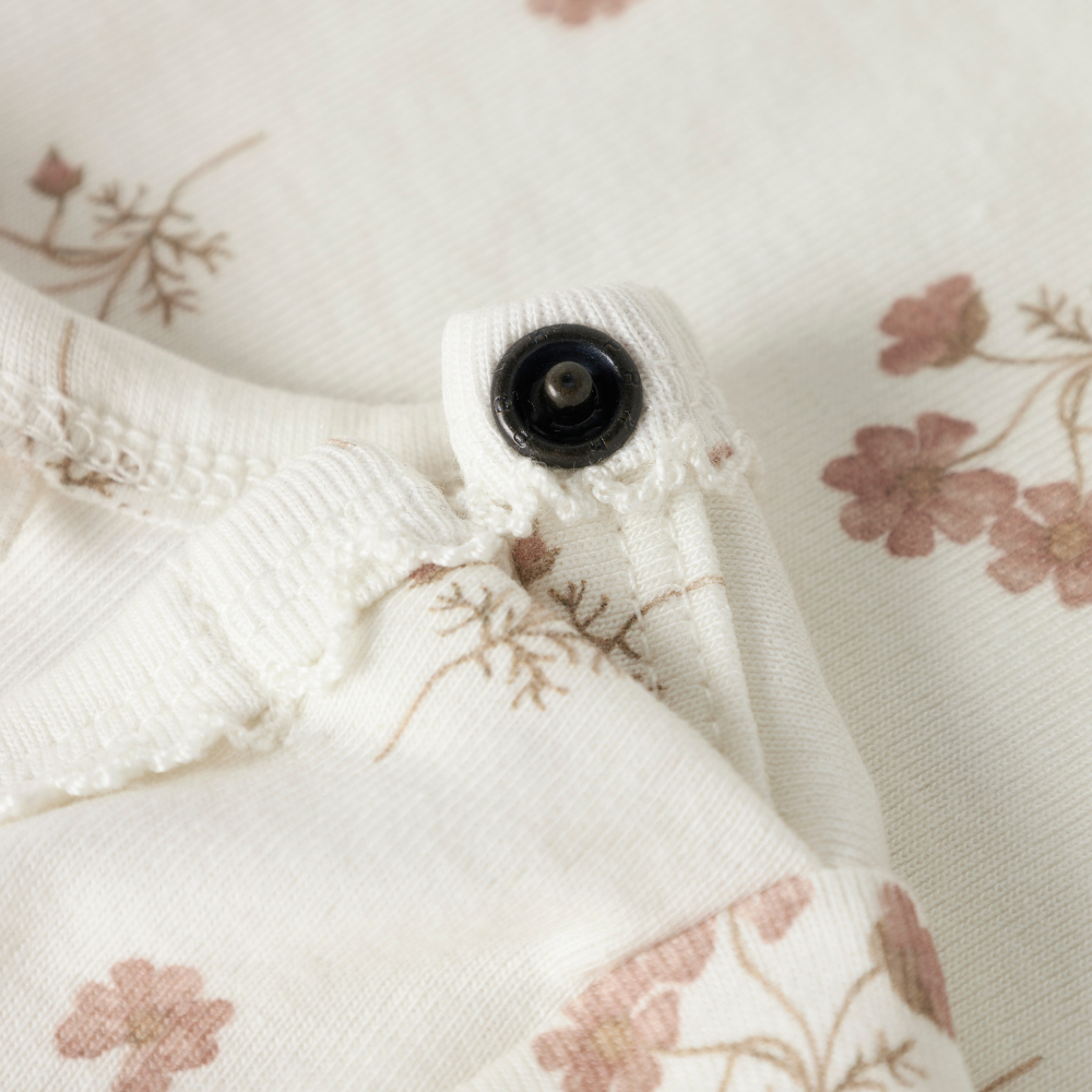 Het schattige bloemenpatroon en de neutrale beige kleur maken de babybody perfect voor meisjes.