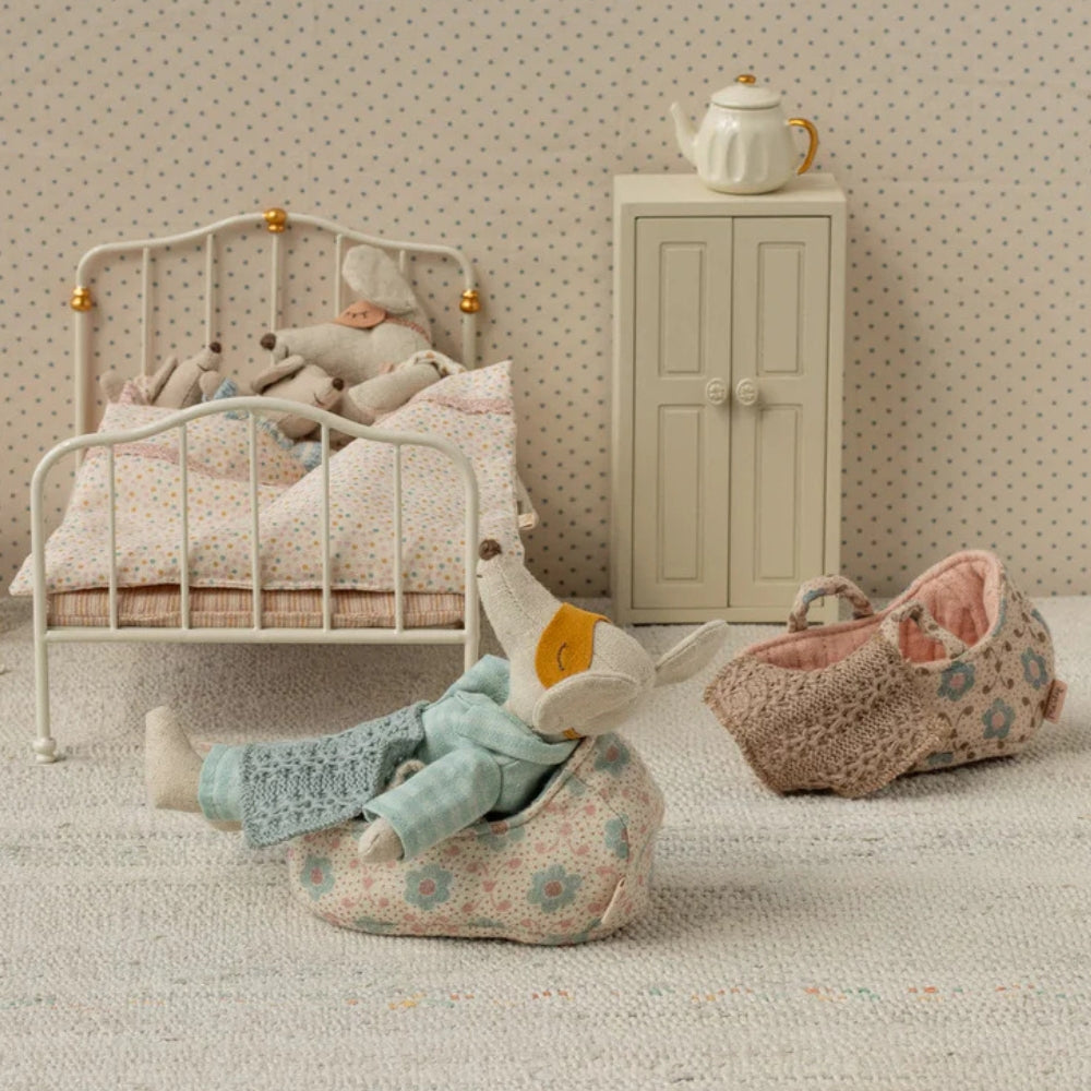 De miniatuur poppenmand van Maileg is een schattig accessoire waarmee je kind fantasierijke taferelen kan creëren tijdens het spelen.