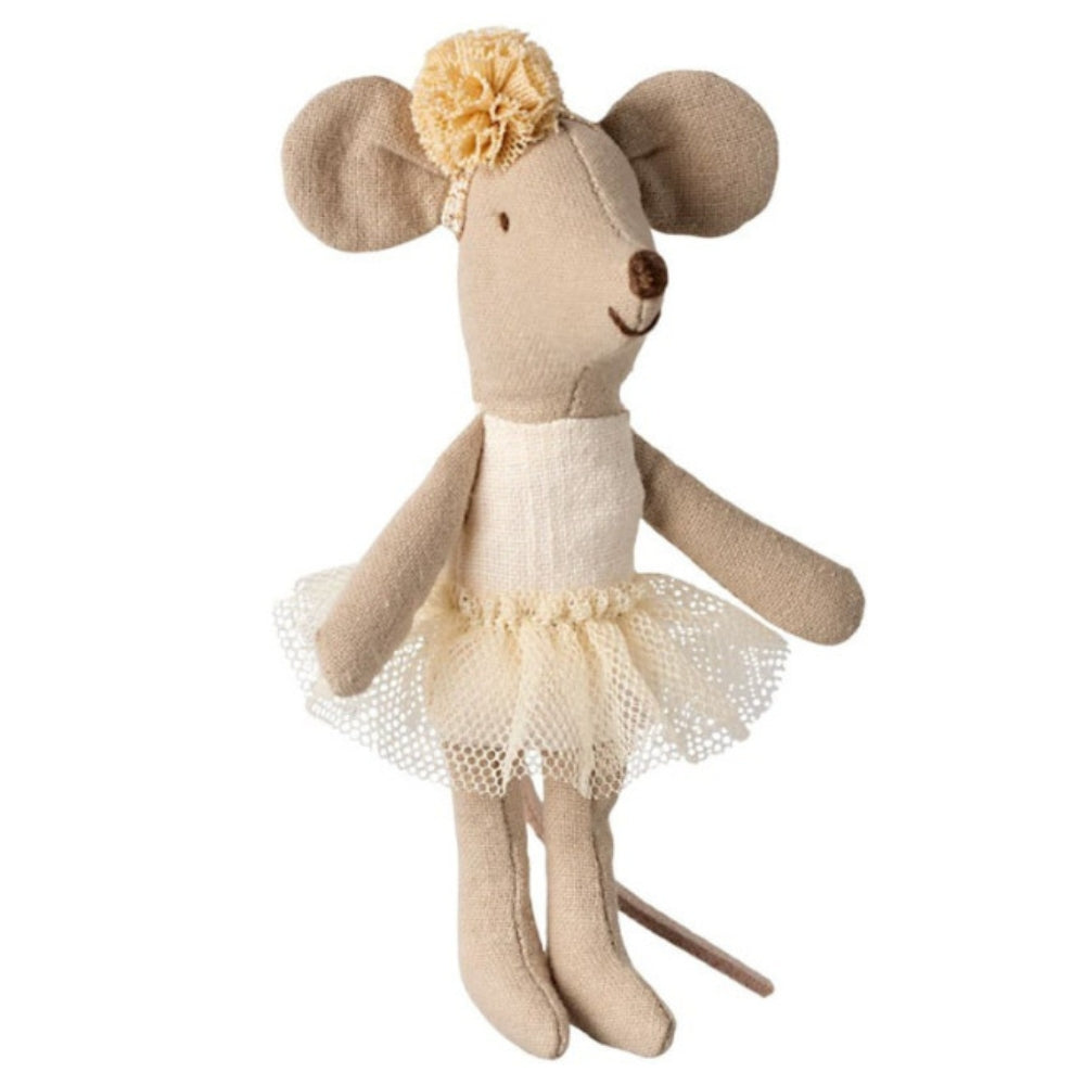 Een schattig zusje van de Maileg muis die houdt van dansen en ballerina spelen.