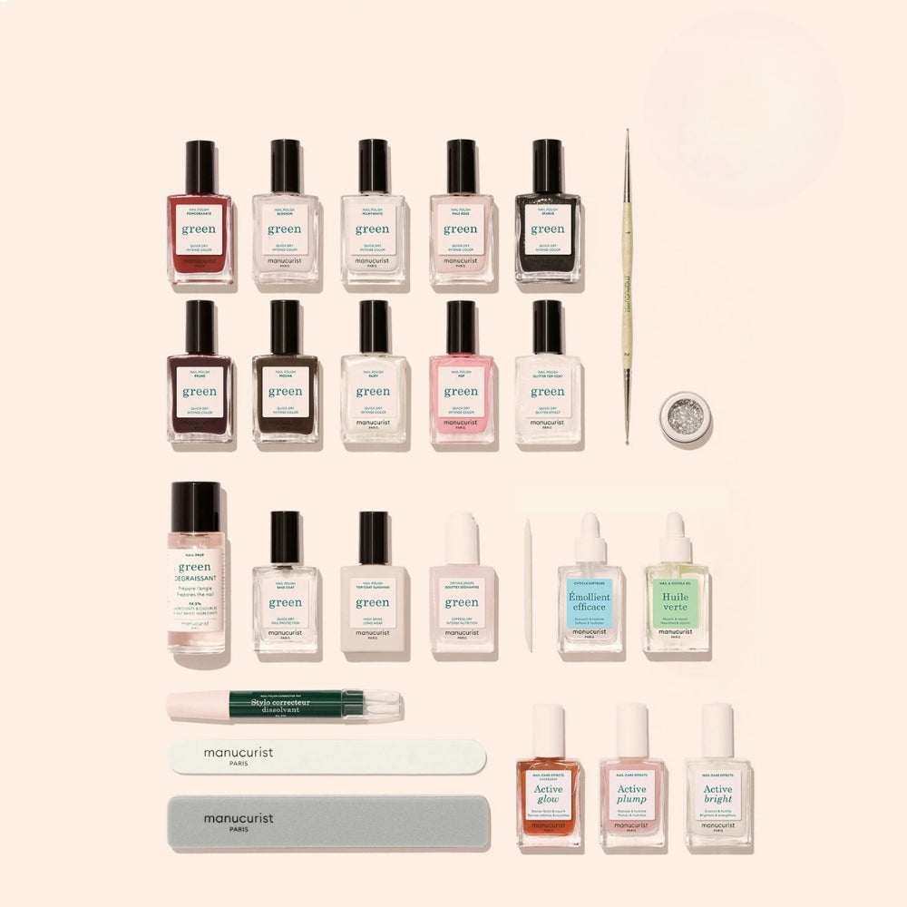 Onder de 24 doosjes vind je 9 Green™ nagellakkleuren: de nieuwe diep bordeauxrode Plum, de holografische witte Fairy, de koele tint Mocha, de klassieke Milky White, de pastelkleur Pale Rose, de delicate Flower, de energieke Pop, de framboos Pomegranate en de glanzende zwarte Sparks.