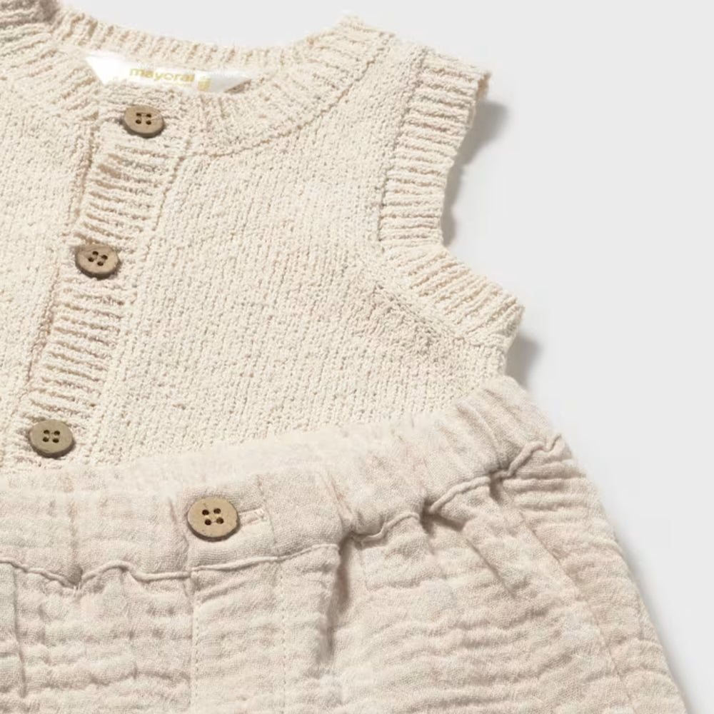 Mayoral 3-delige set voor pasgeborenen met shirt, vest en korte broek Wheat